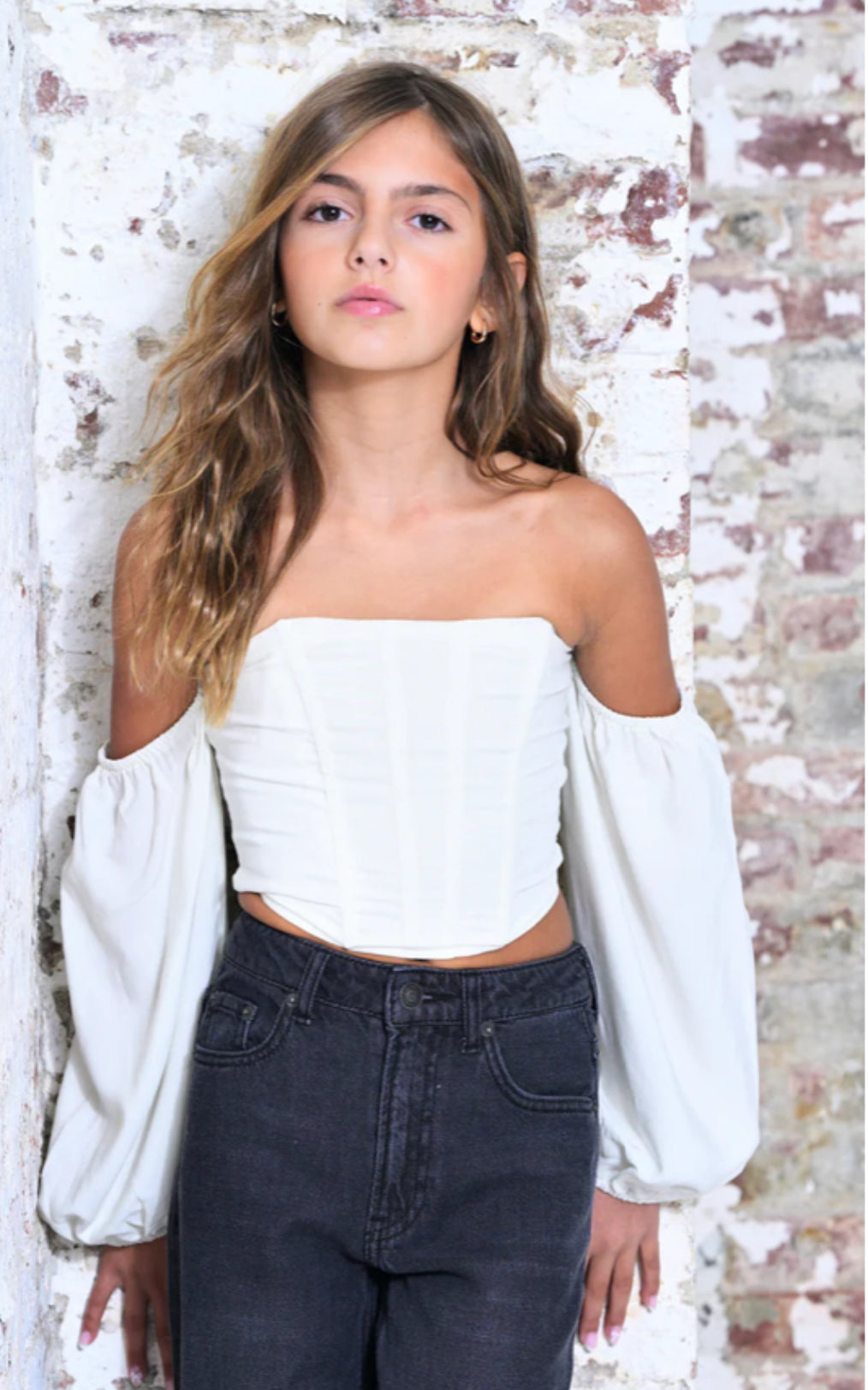 Katie J Girls Off White Sophia Corset Off Shoulder Top