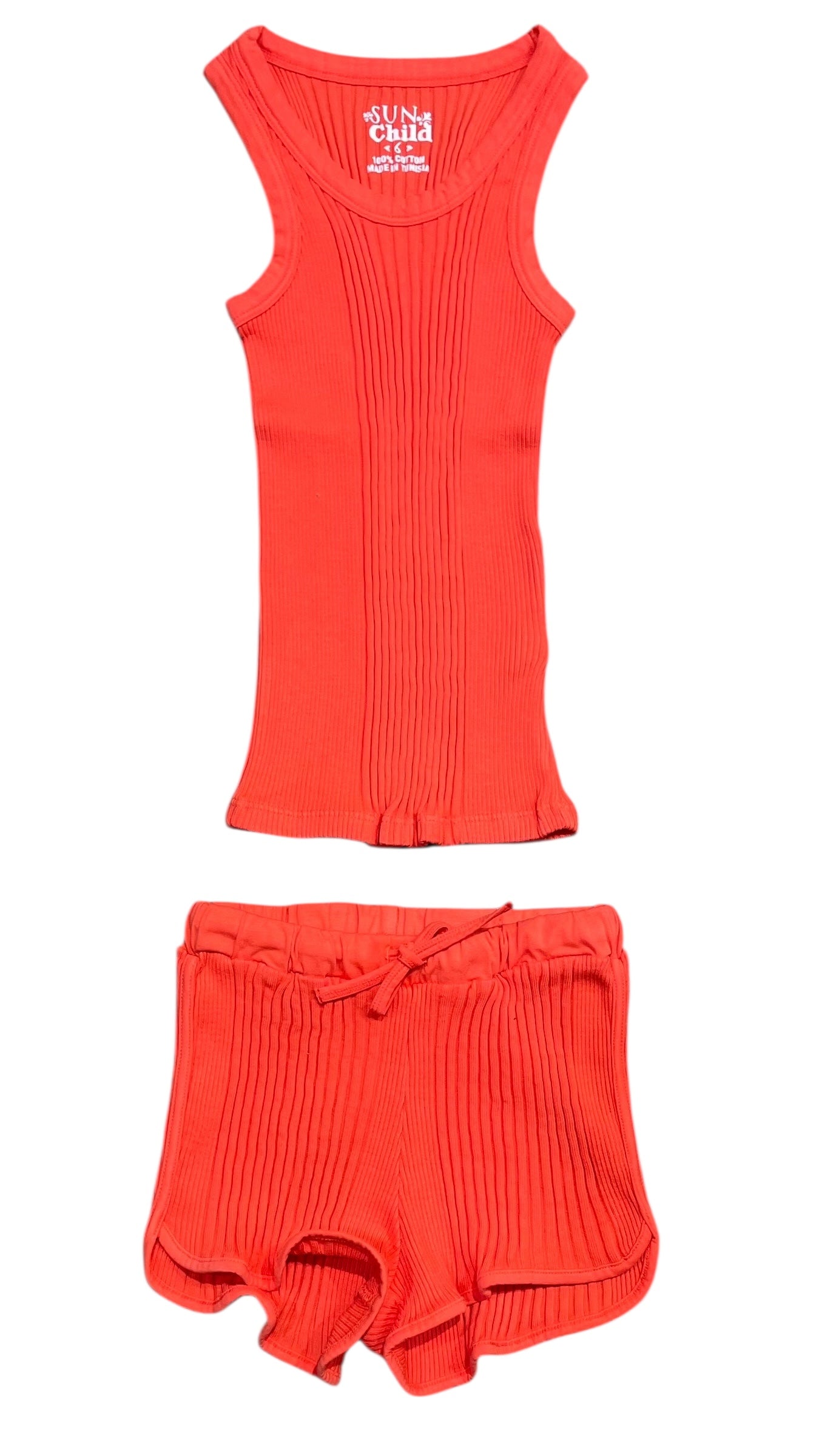 Sunchild Girls Tangerine Ribbed Fernando Tank and Rio Shorts Set
