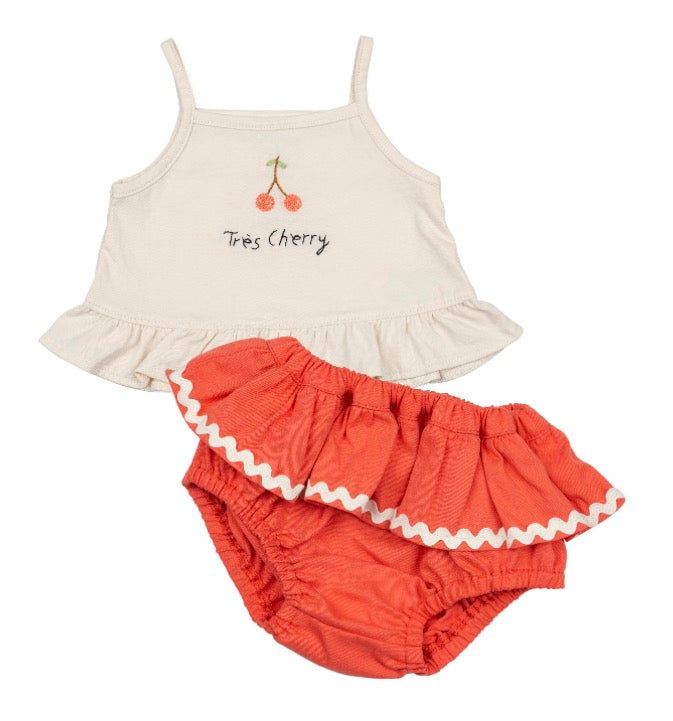 Wild Wawa Baby Girls Tres Cherry Tank and Bloomers Set