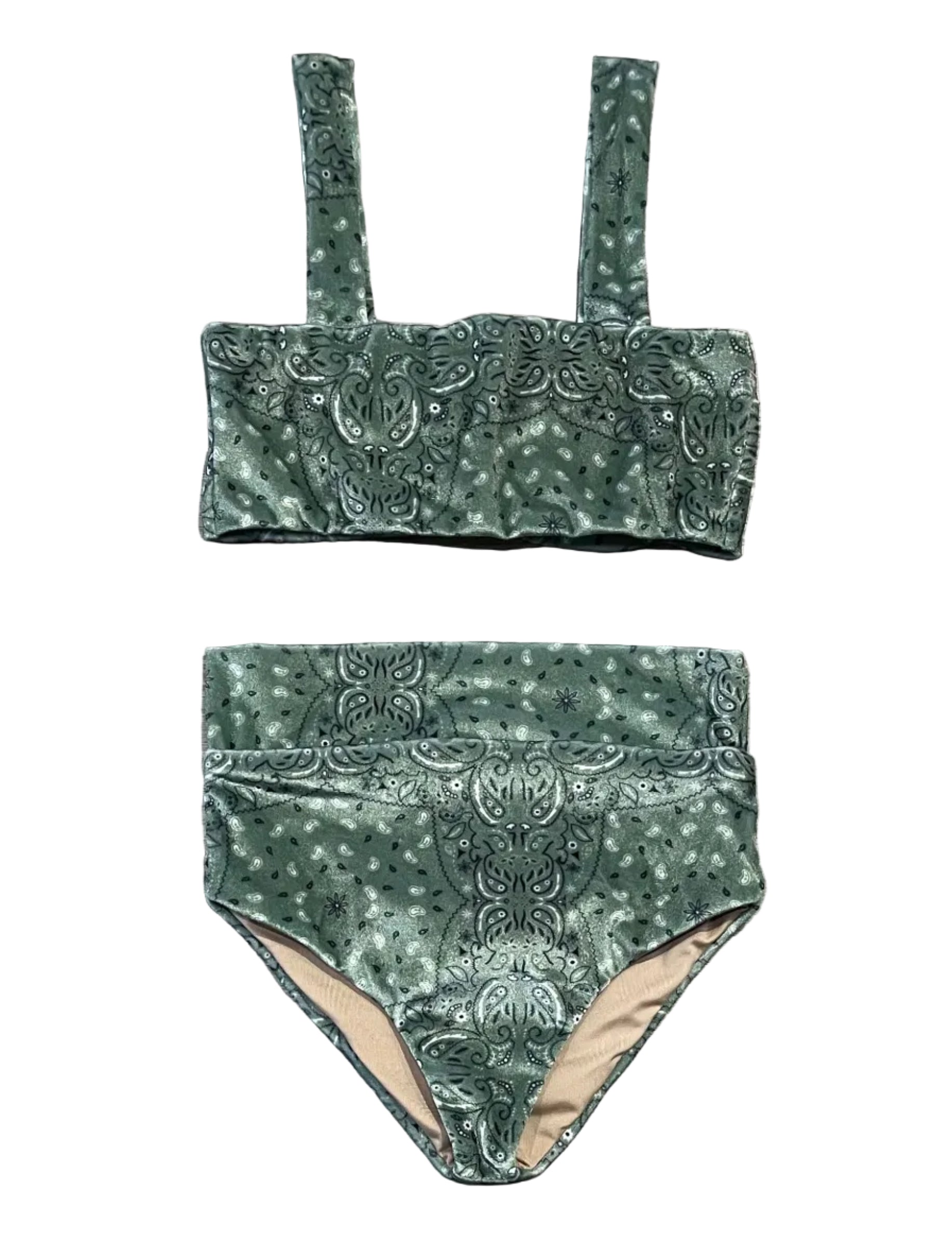 Dalai Girls Green Bandanna Velvet Noelle Bikini