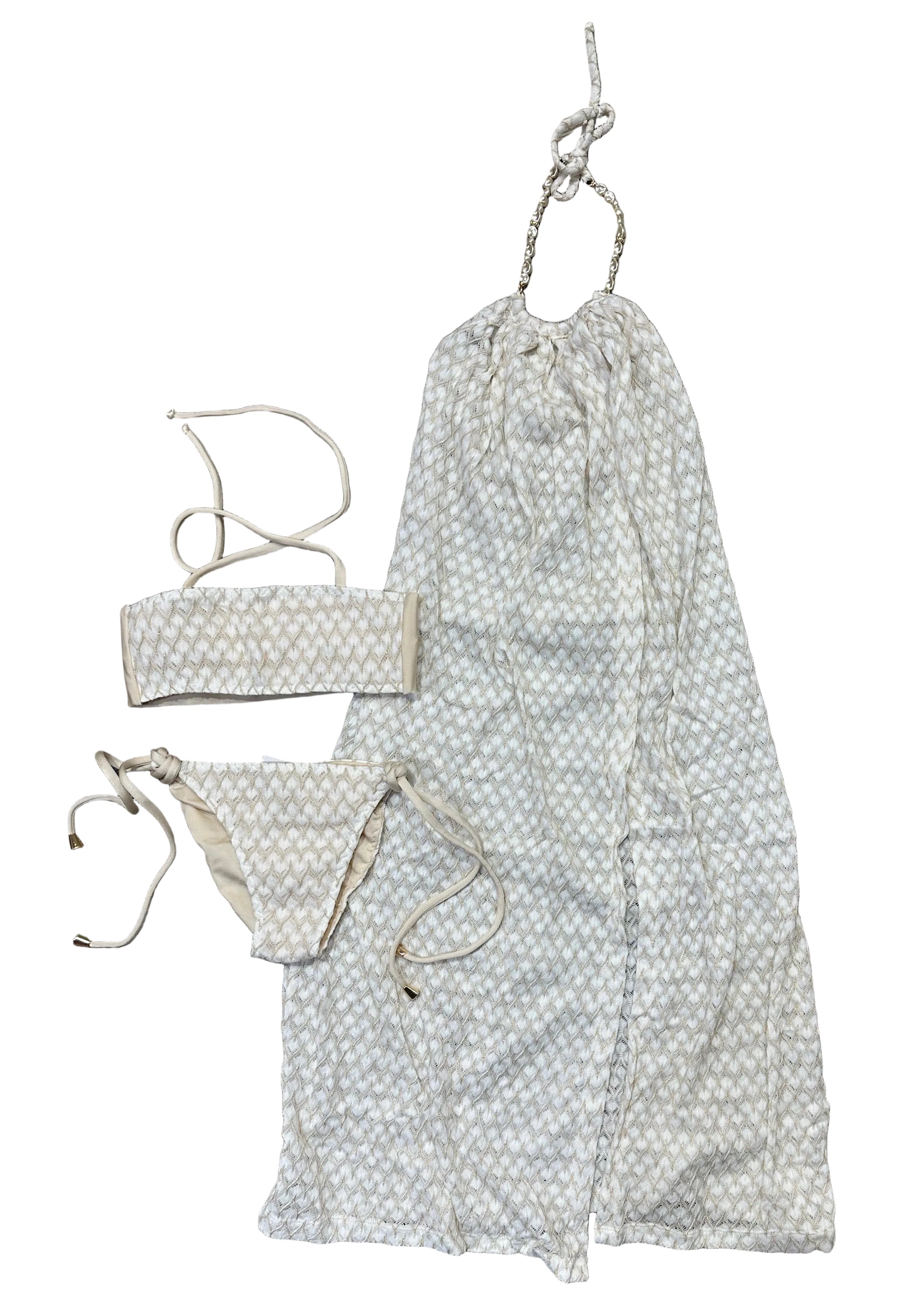 Dalai Girls Off Gold Tricot Bikini Florence Maxi Slit Halter Dress