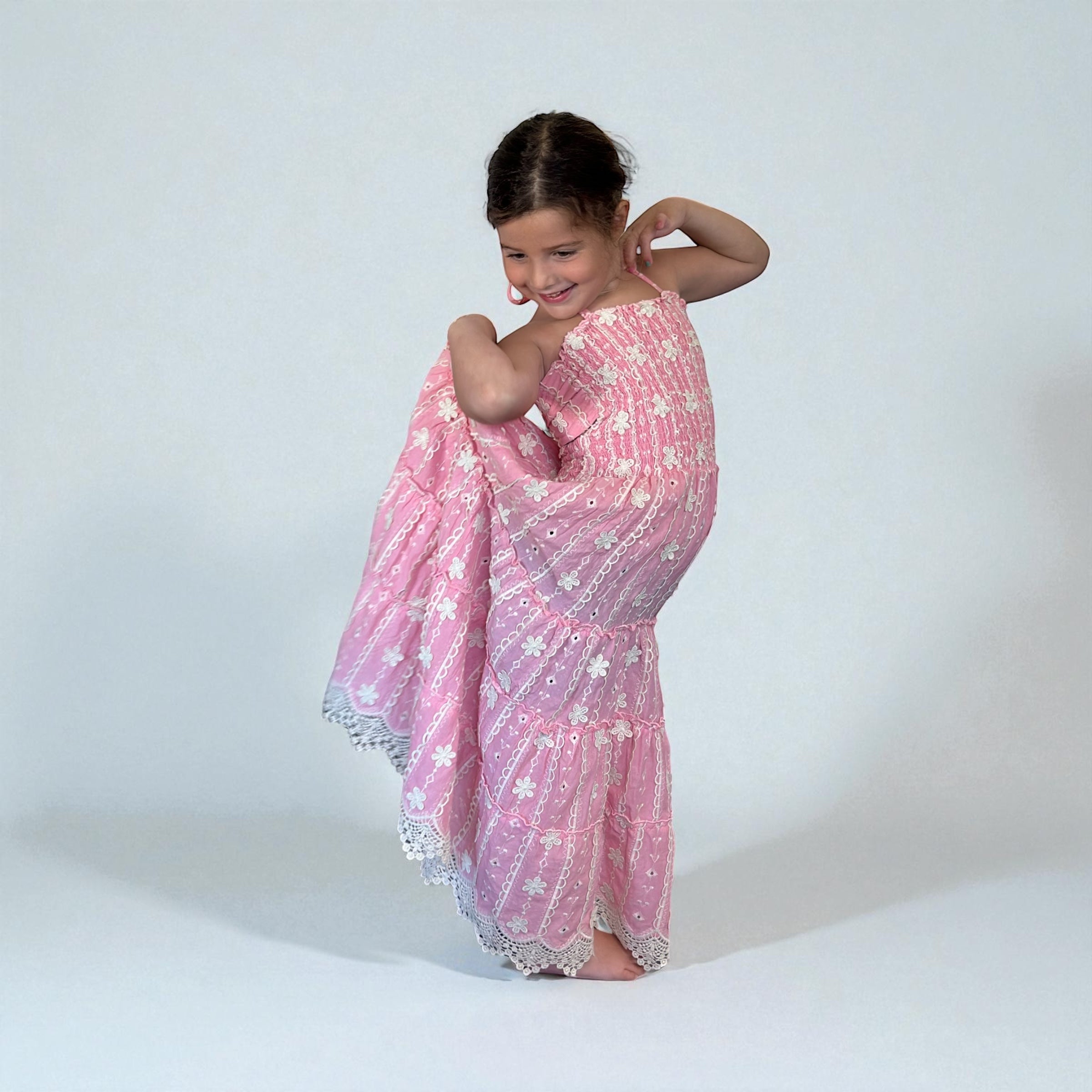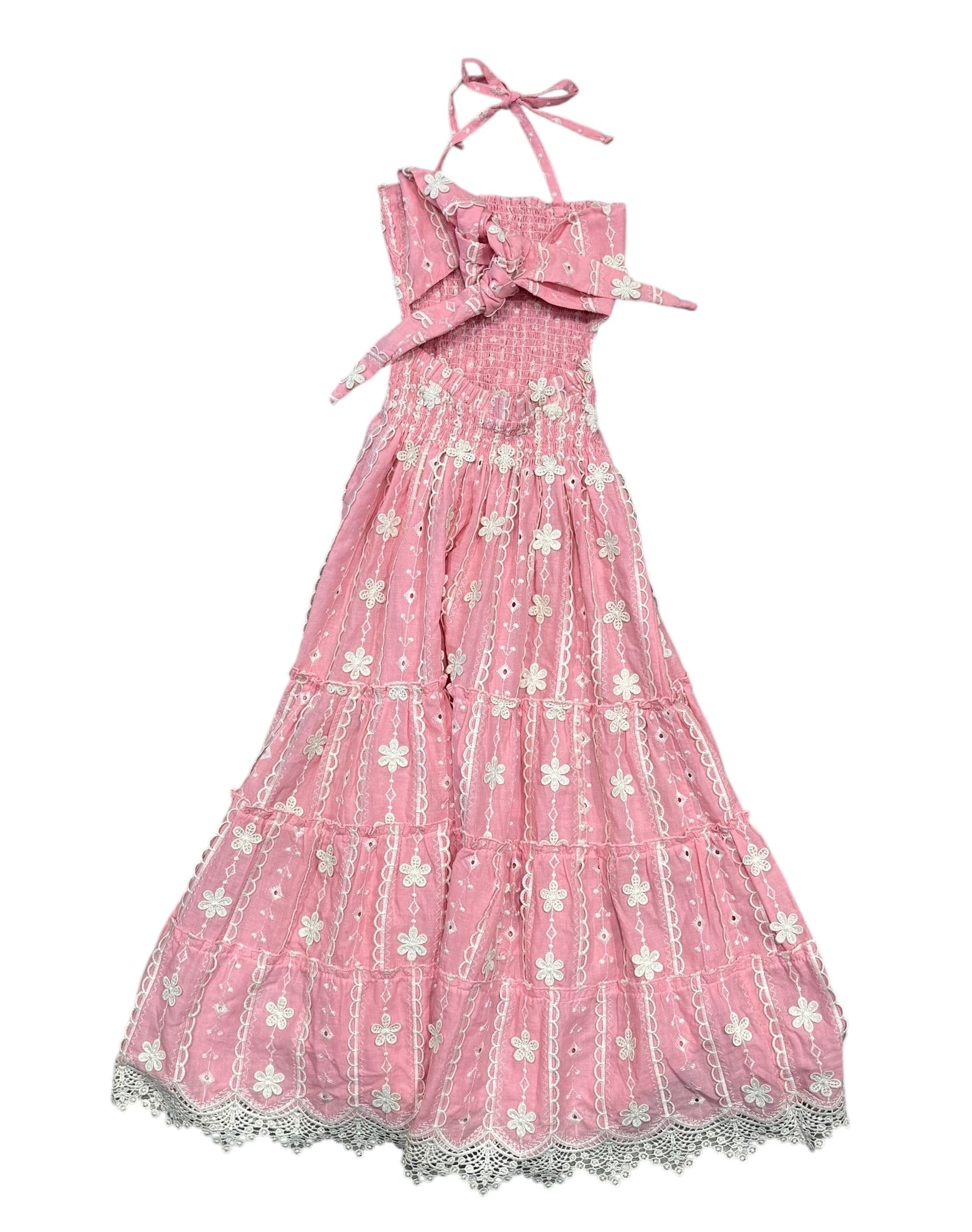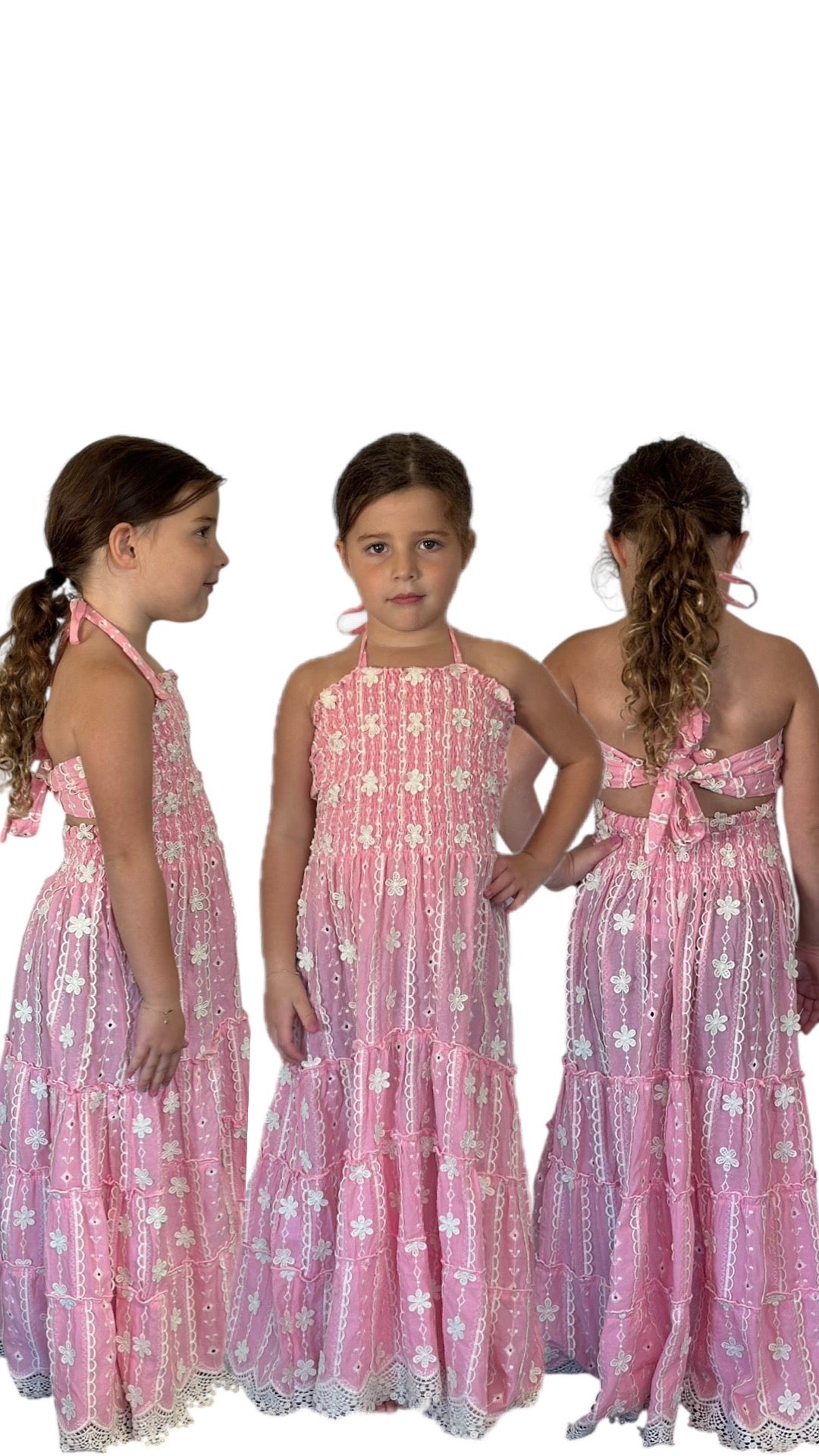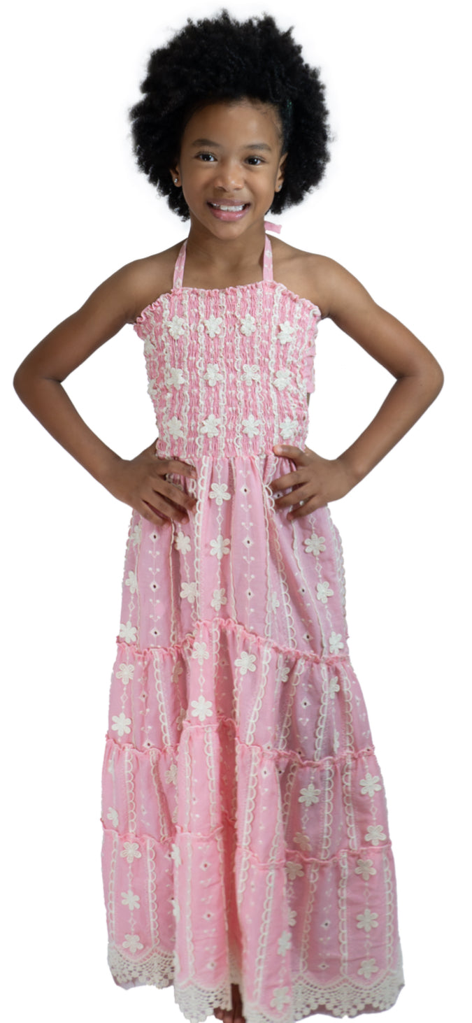 Dalai Girls Pink Embroidered Laise Amelia Maxi Dress