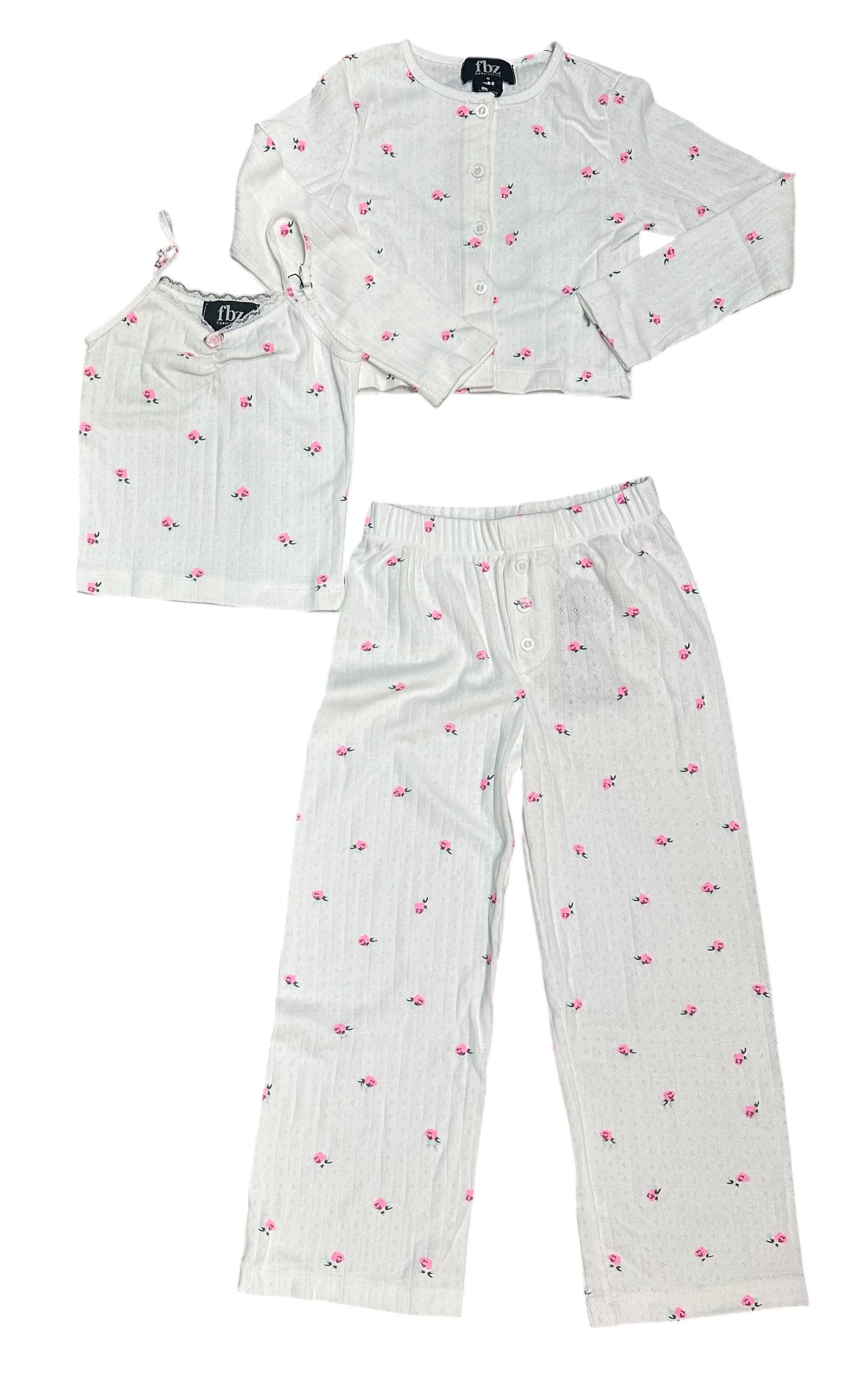 Flowers by Zoe Girls Pink Rose Tank Cardi and Pants Lounge Set