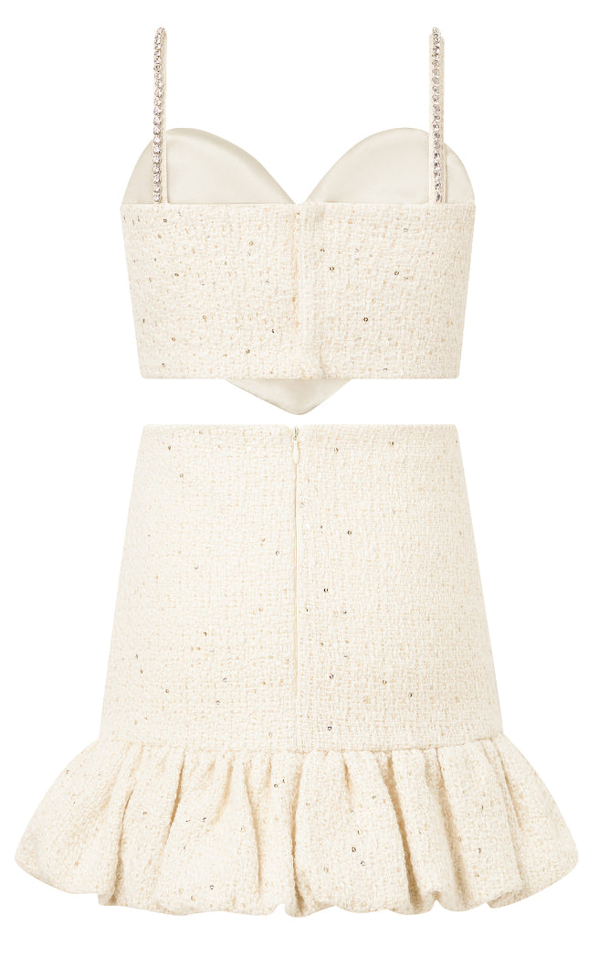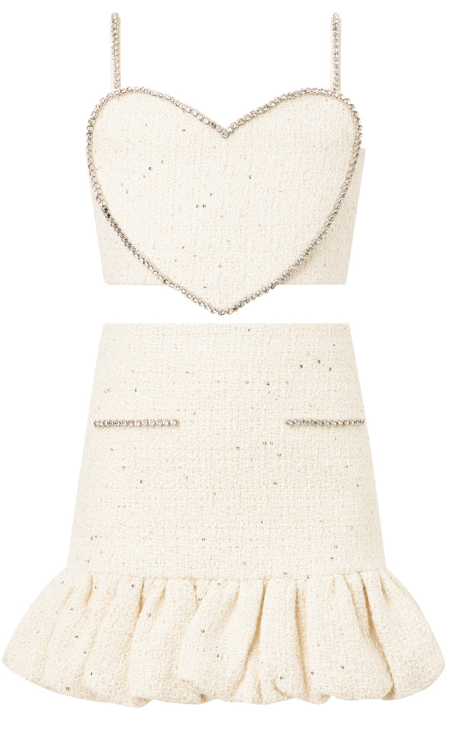 Marlo Girls Cream Odelia Heart Shaped Tweed Top and Skirt Set