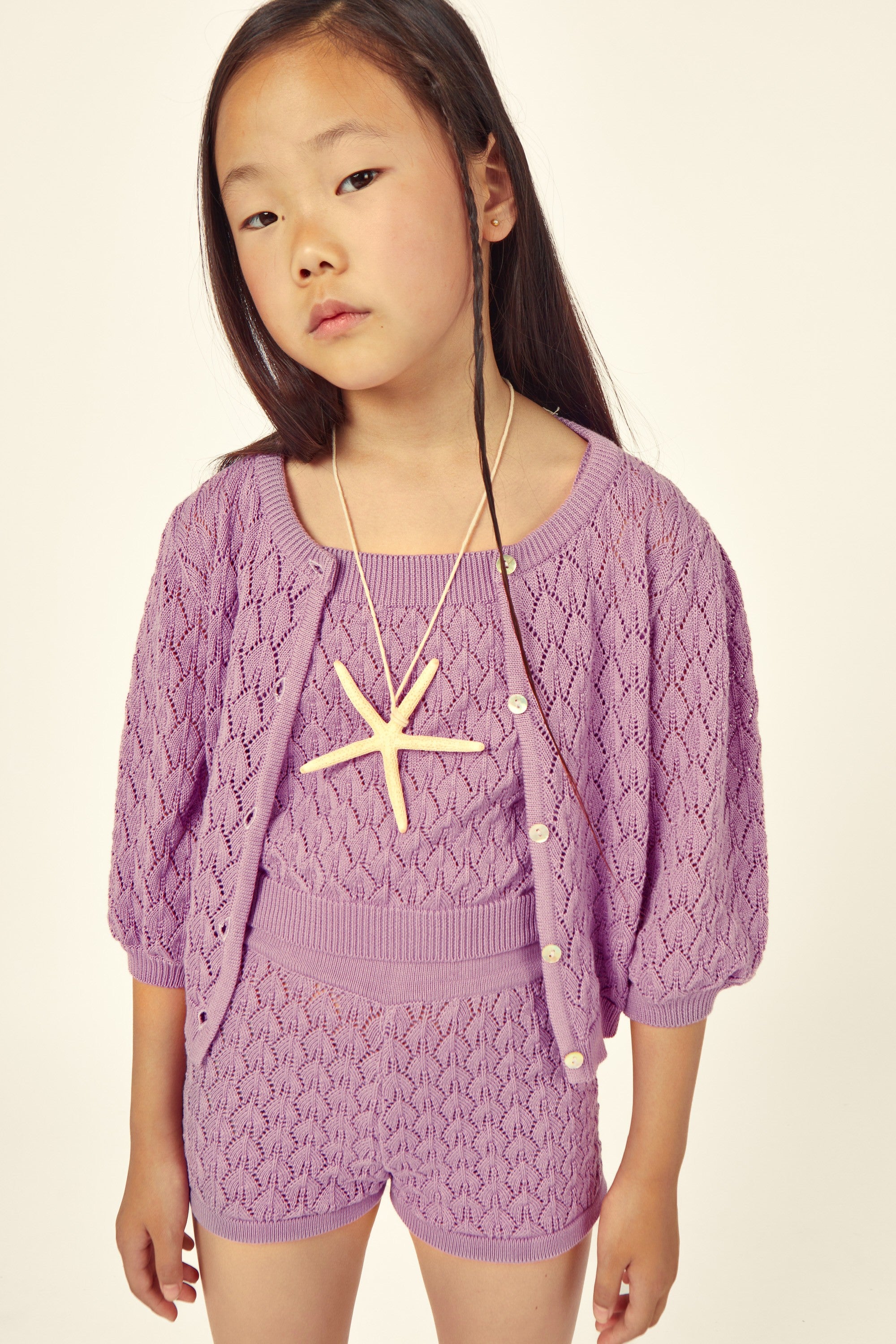 Mipounet Girls Lavender Dakota Openwork Cardigan Tank and Shorts Set