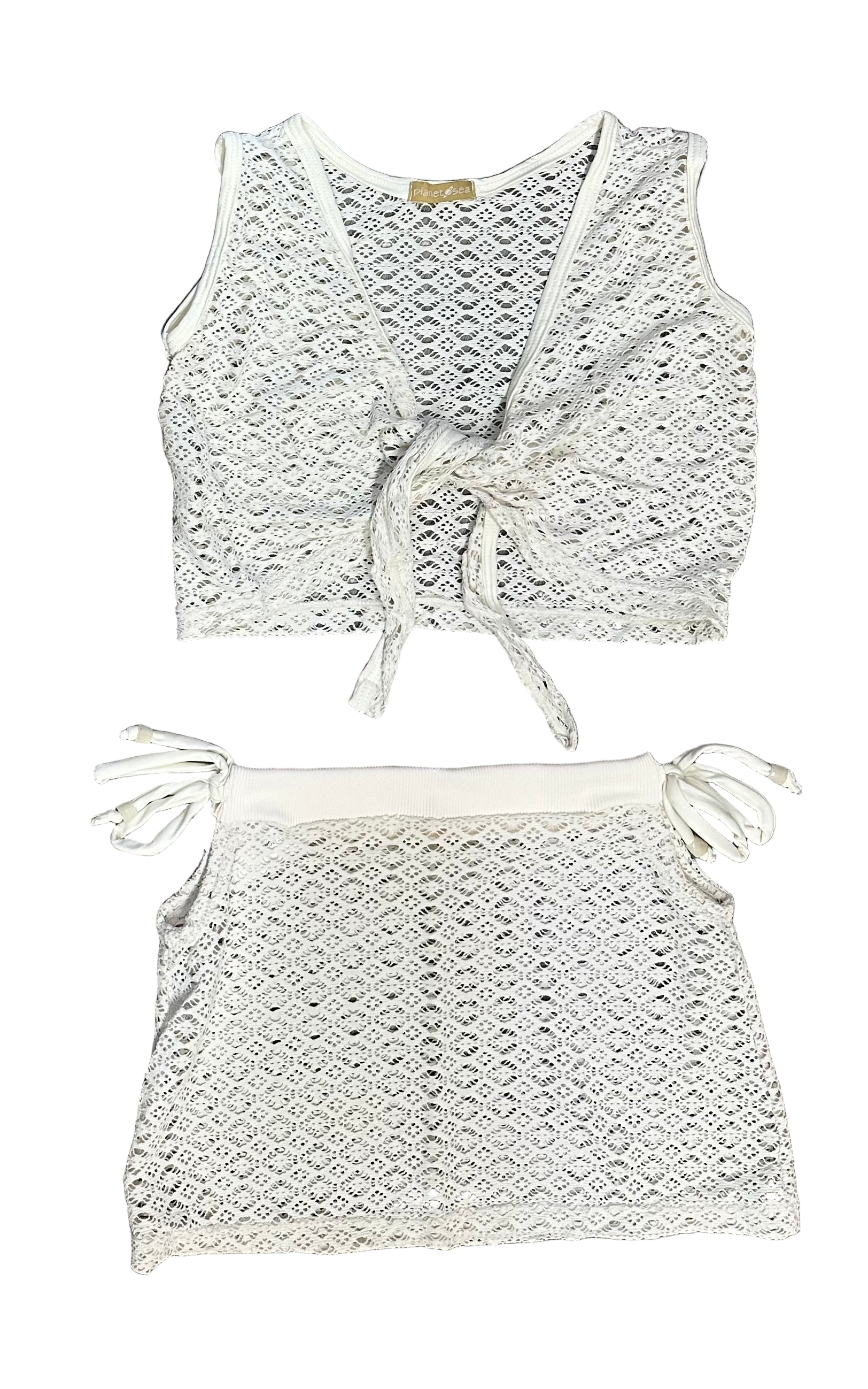 Planet Sea Girls Off White Mesh Tie Top and Skirt Set