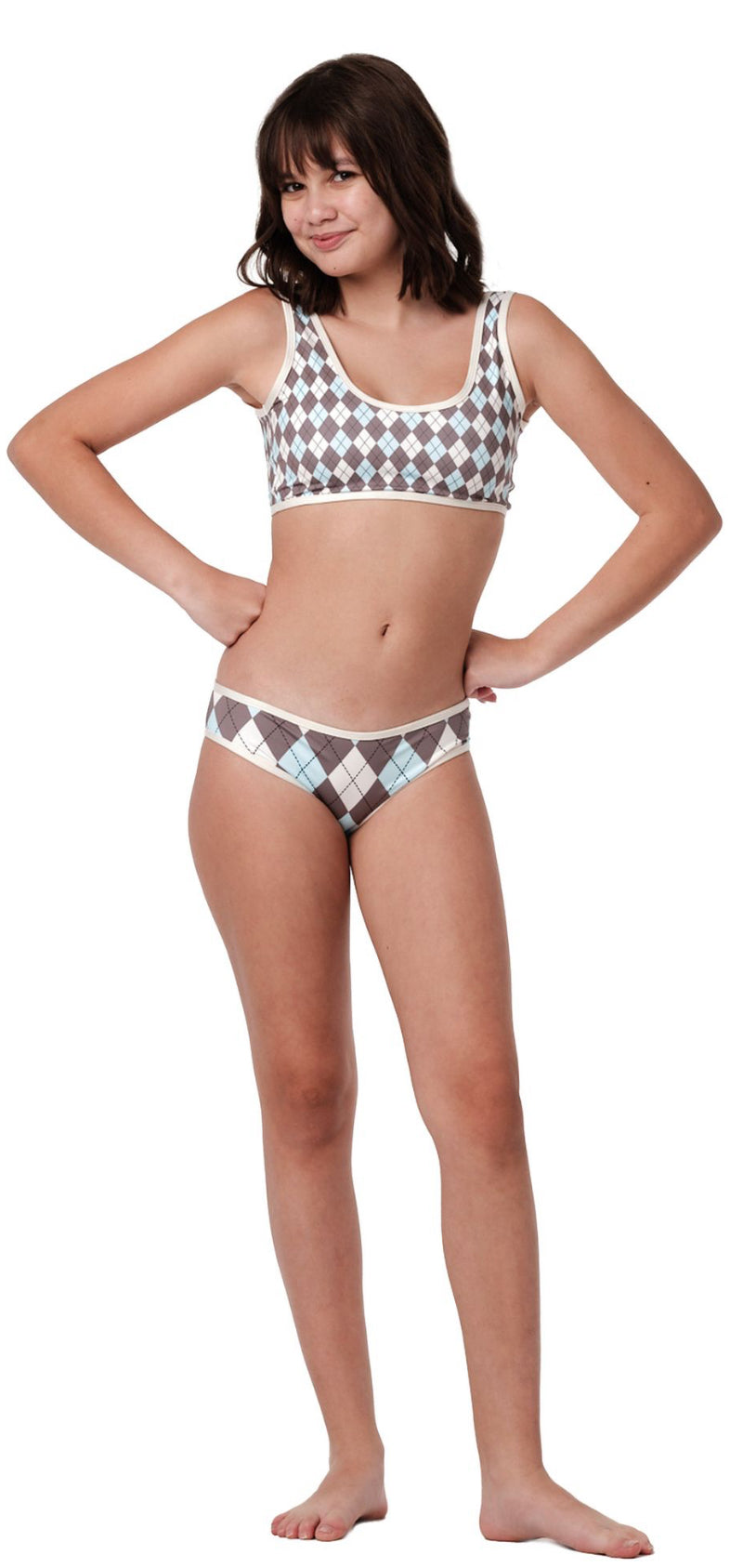 Submarine Girls Sky Argyle Back Up Tank Bikini