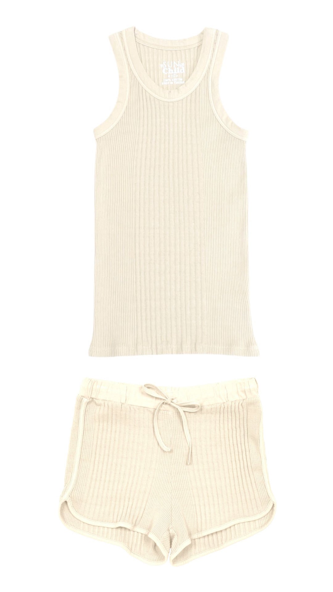 Sunchild Girls Off White Ribbed Fernando Tank and Rio Shorts Set