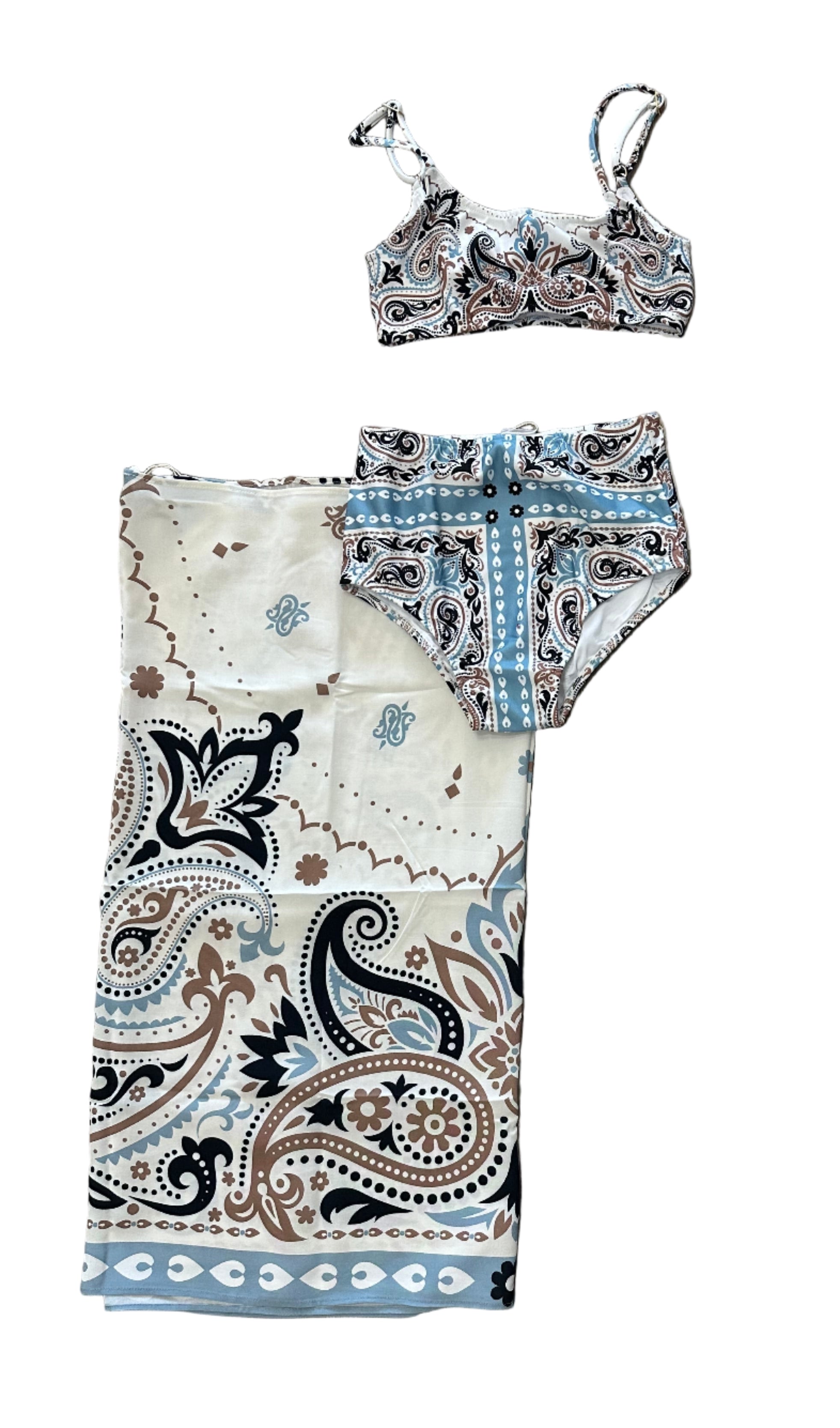 TR Girls Exclusive Bandanna Daisy High Waisted Bikini and Pareo Set