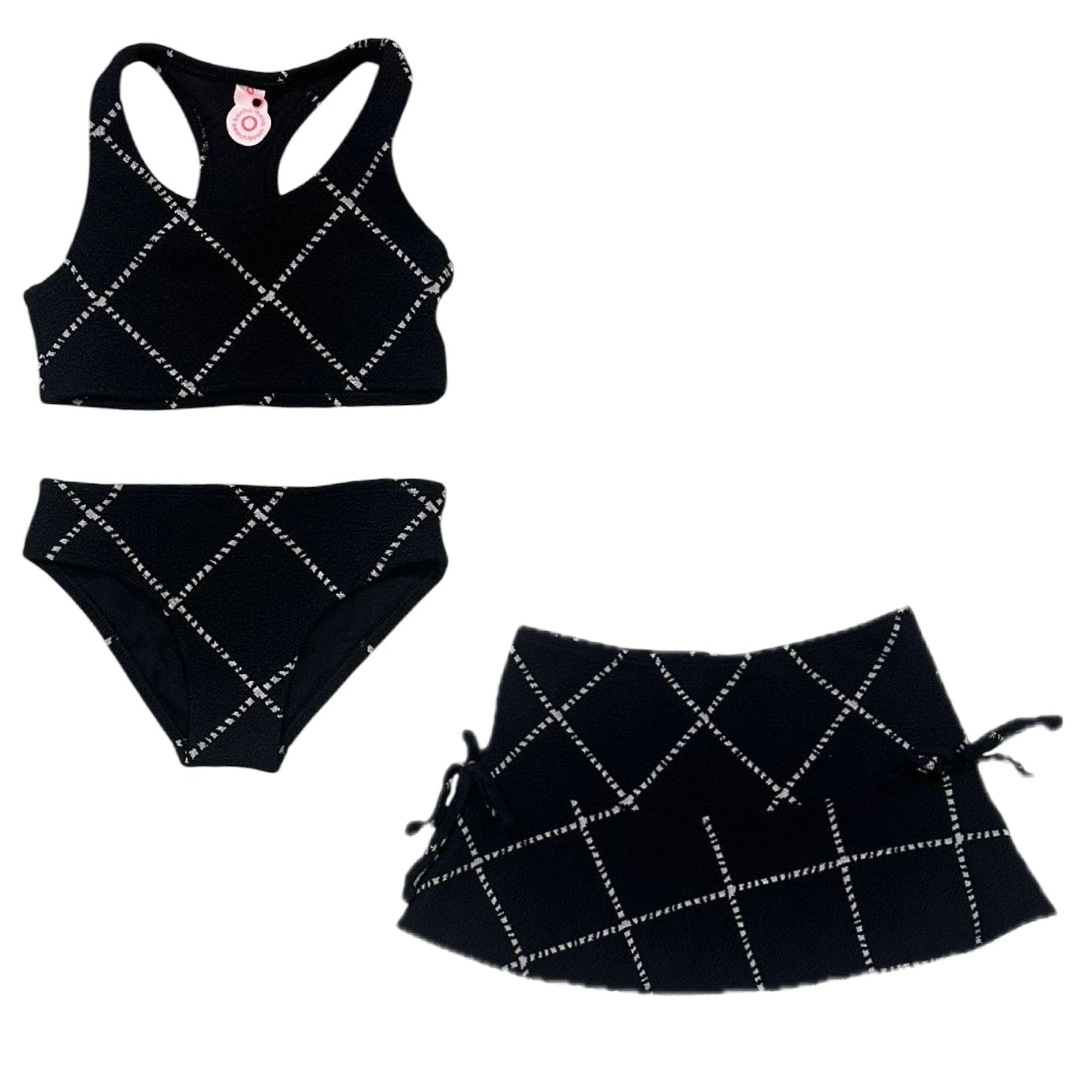 BB Girls Black Argyle T Back Bikini and Bow Skirt Set
