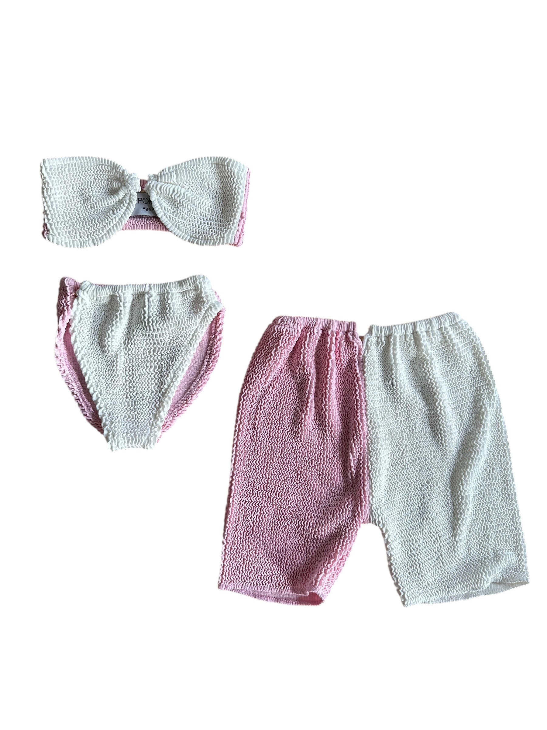 Colorblock Girls Pink and White with Heart Bandeau Bikini and Shorts Set