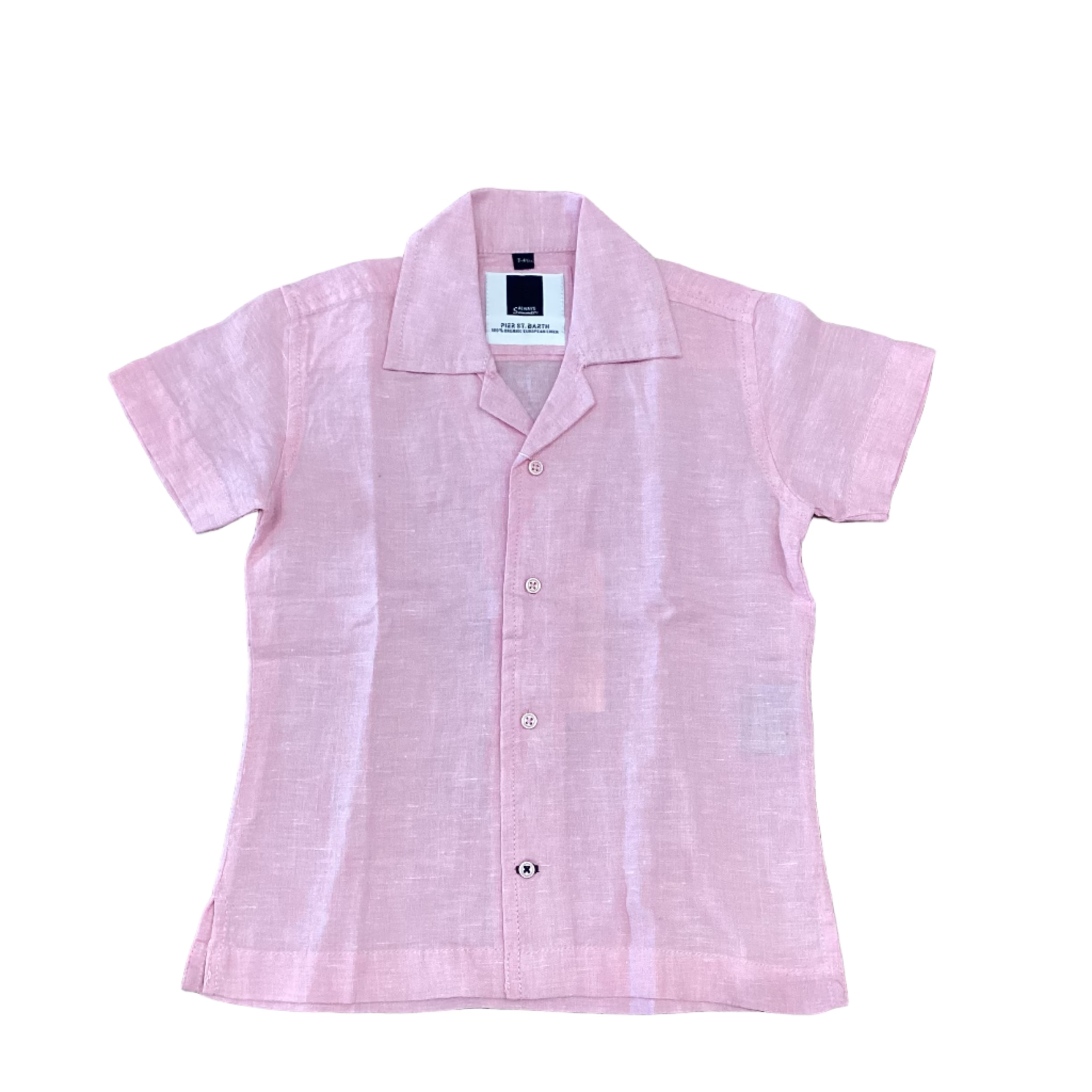 Pier St Barths Boys Pink Mustique Linen Short Sleeve Button Down Shirt