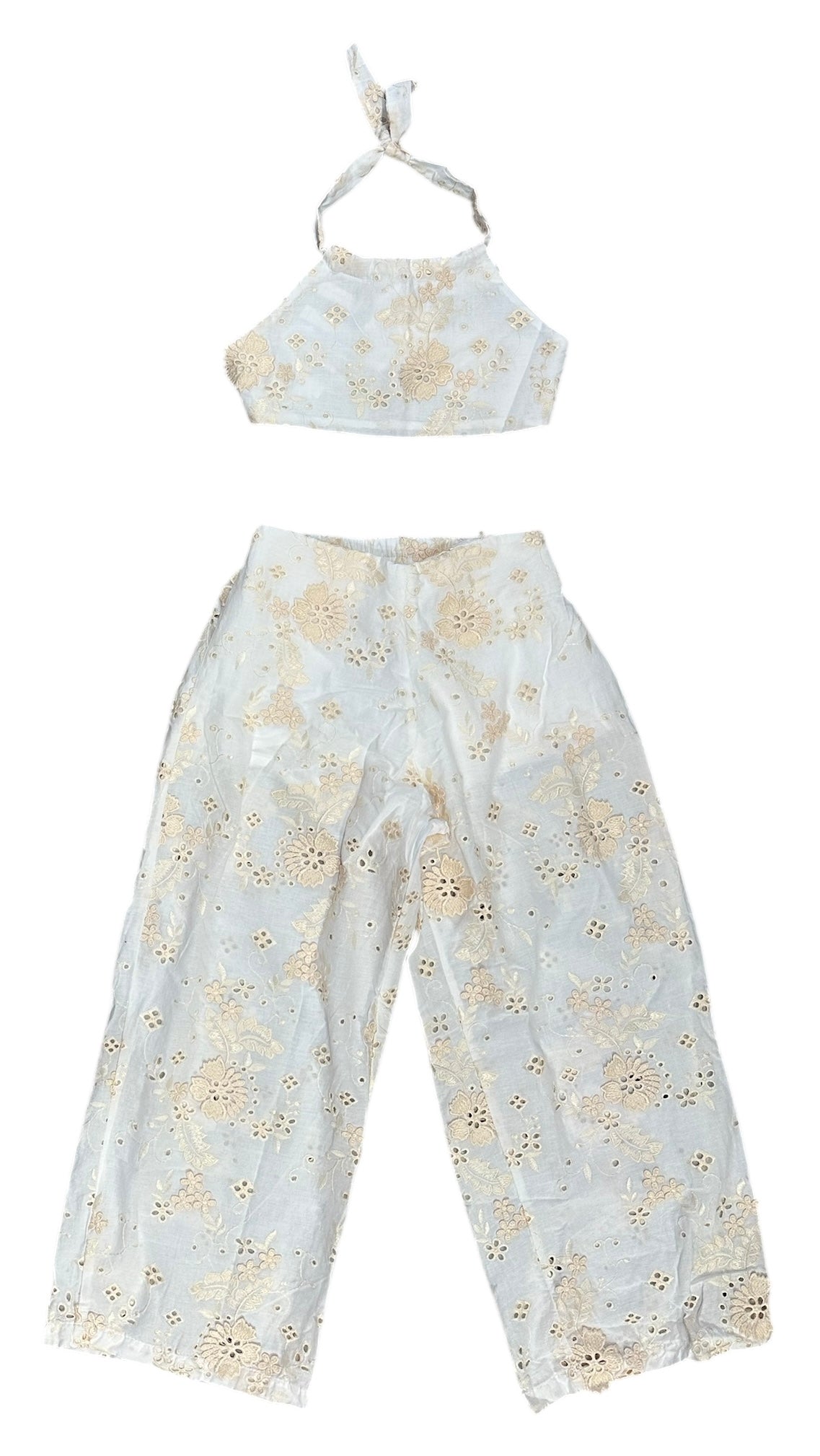 Dalai Girls Off White Embroidered Gemma Pants and Lola Top Set