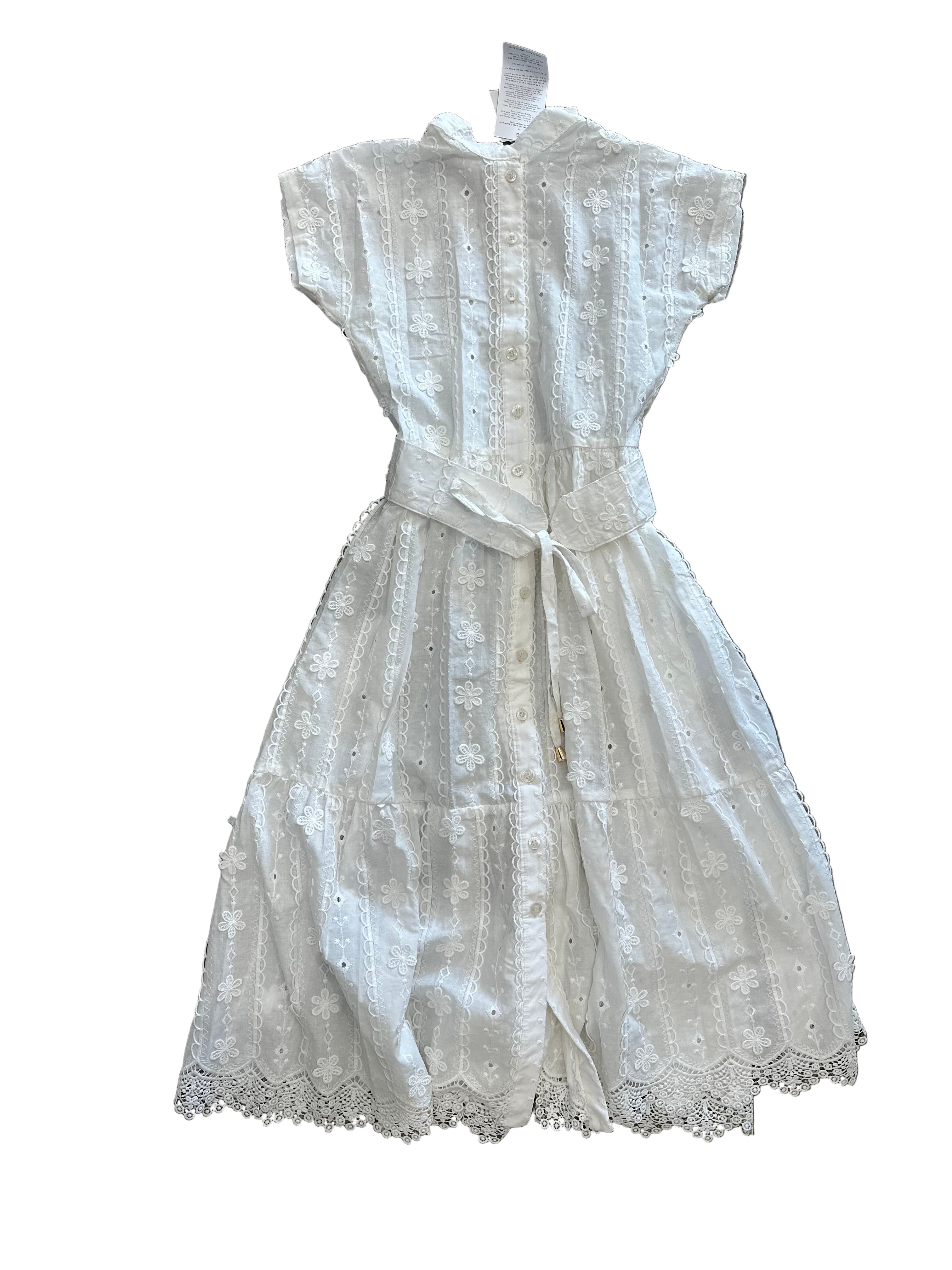 Dalai Girls White Embroidered Ellis Button Maxi Dress