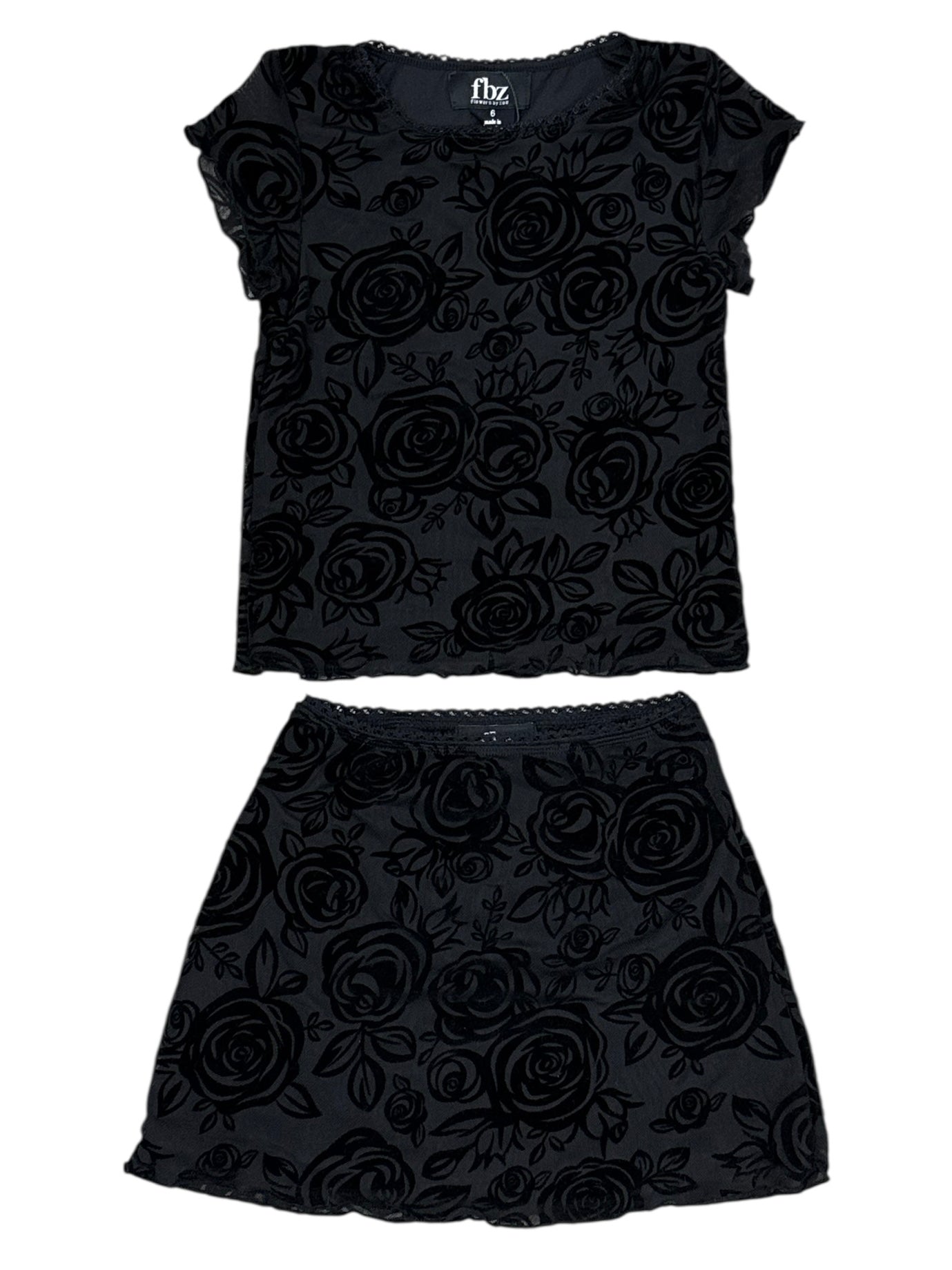 Flowers by Zoe Girls Black with Black Flowers Net Top and Skirt Set