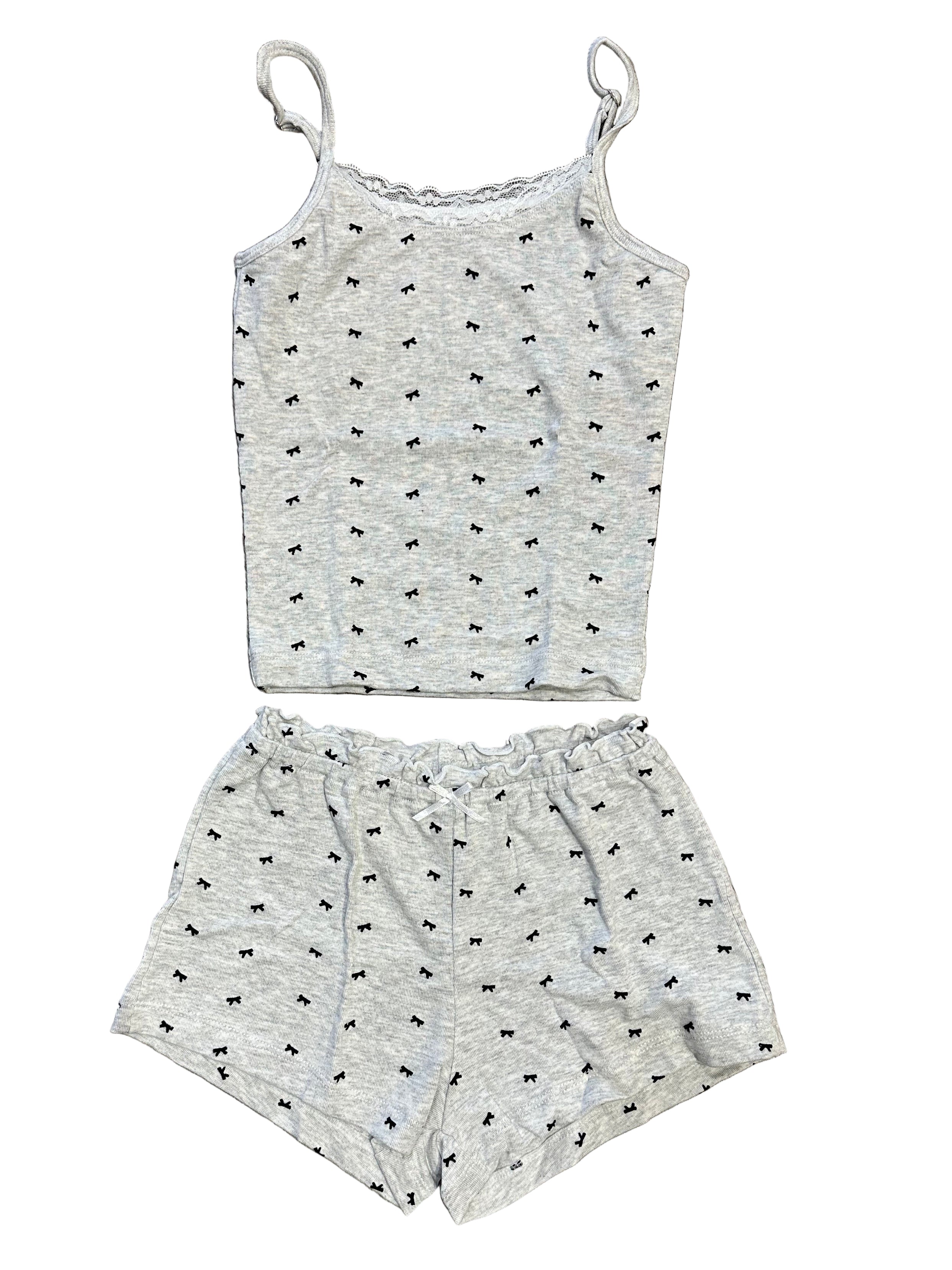 Flowers by Zoe Girls Grey with Bows Tank and Short Lounge Set