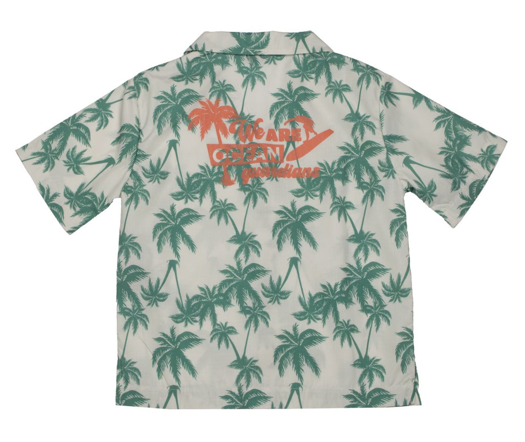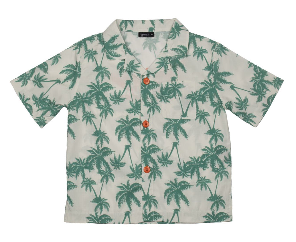 Yporque Boys and Girls Palm Print Short Sleeve Button Shirt