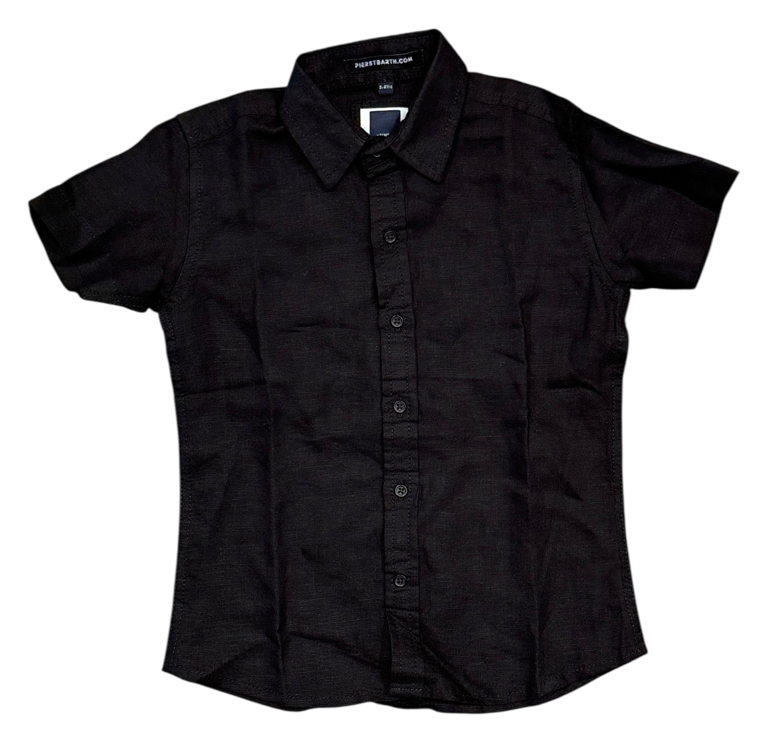 Pier St Barths Boys Black Linen Short Sleeve Button Down Shirt