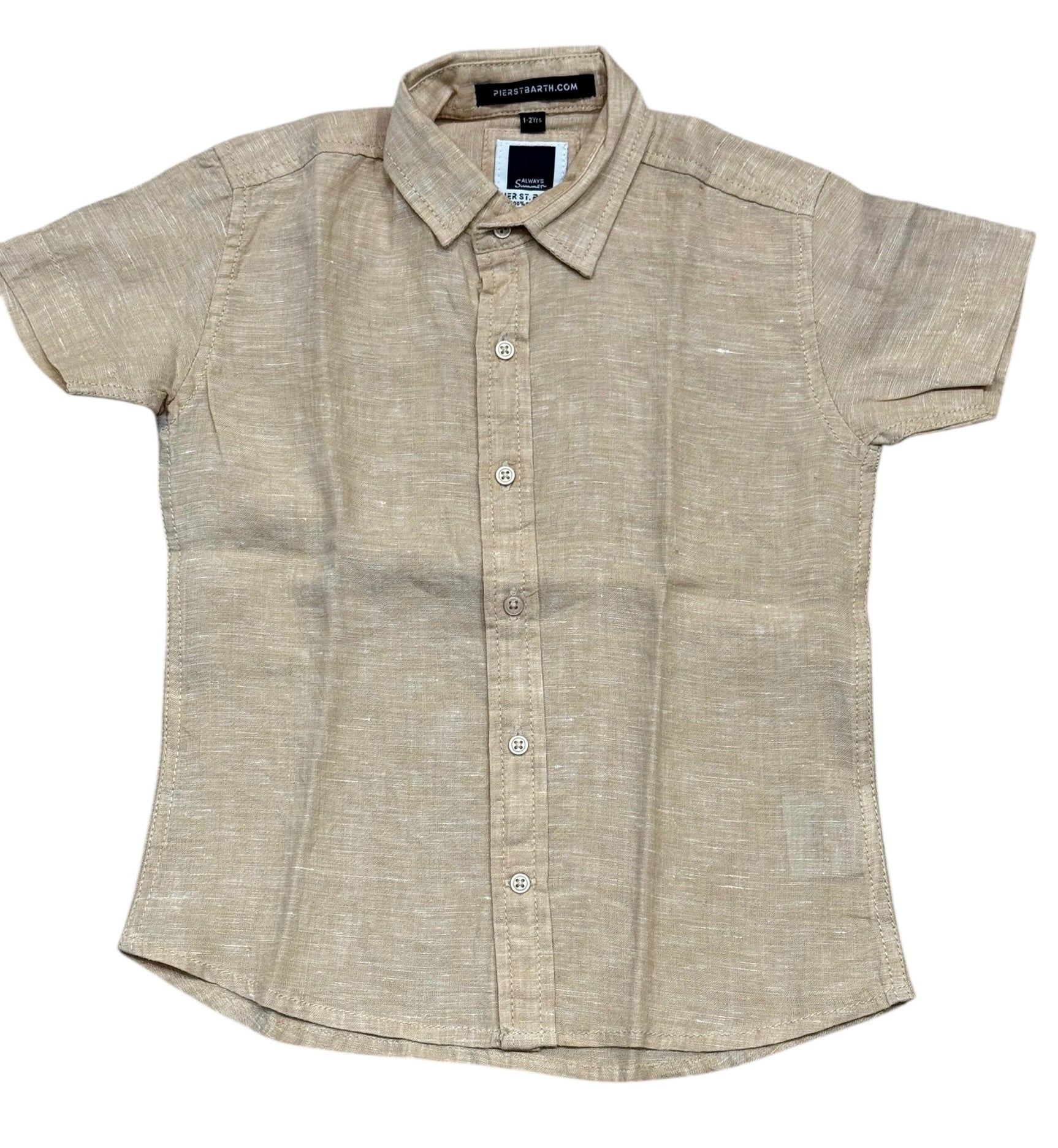 Pier St Barths Boys Camel Linen Short Sleeve Button Down Shirt