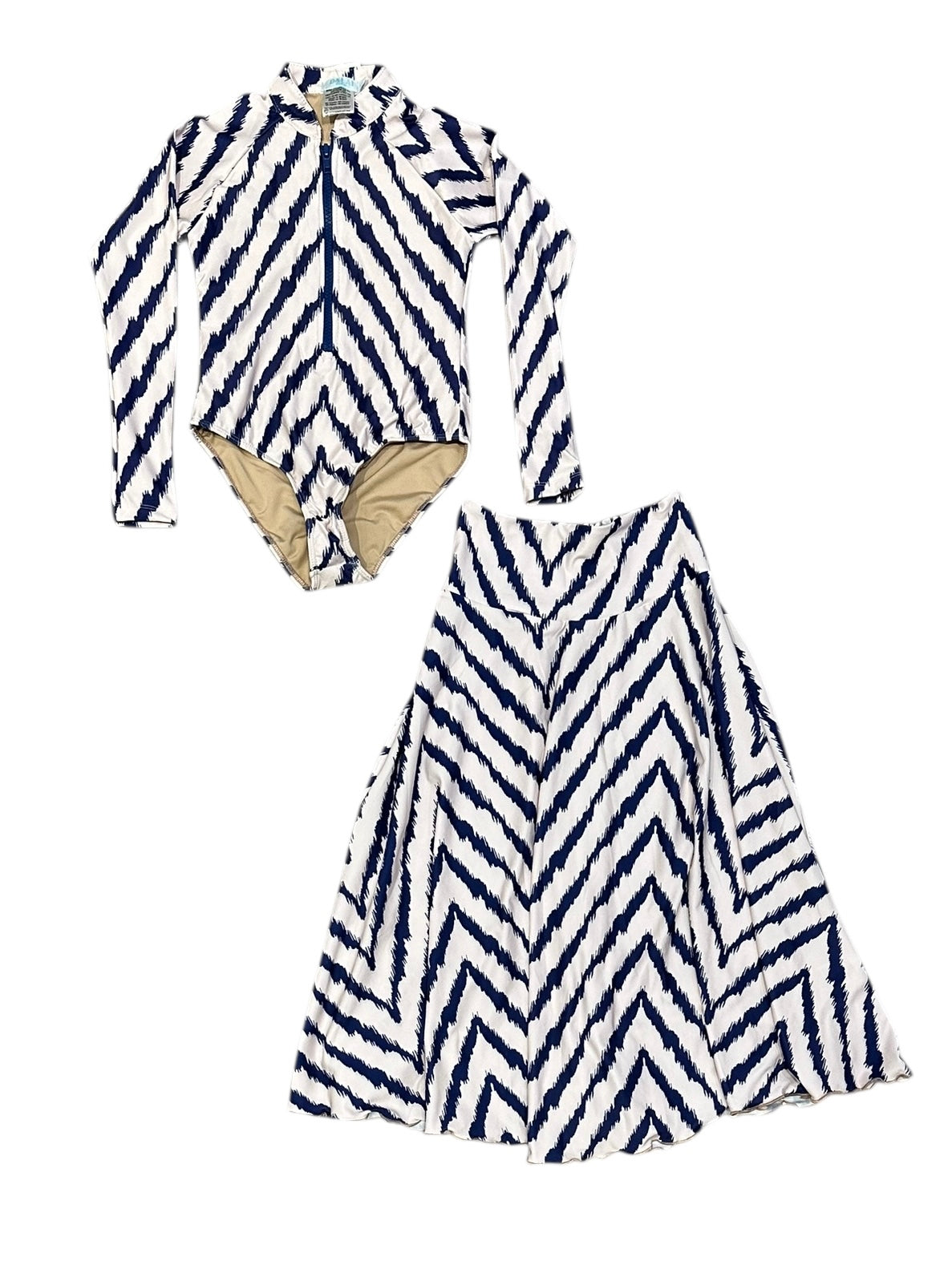Dalai Girls Navy Zebra Long Sleeve Rashguard and Swim Skirt Set