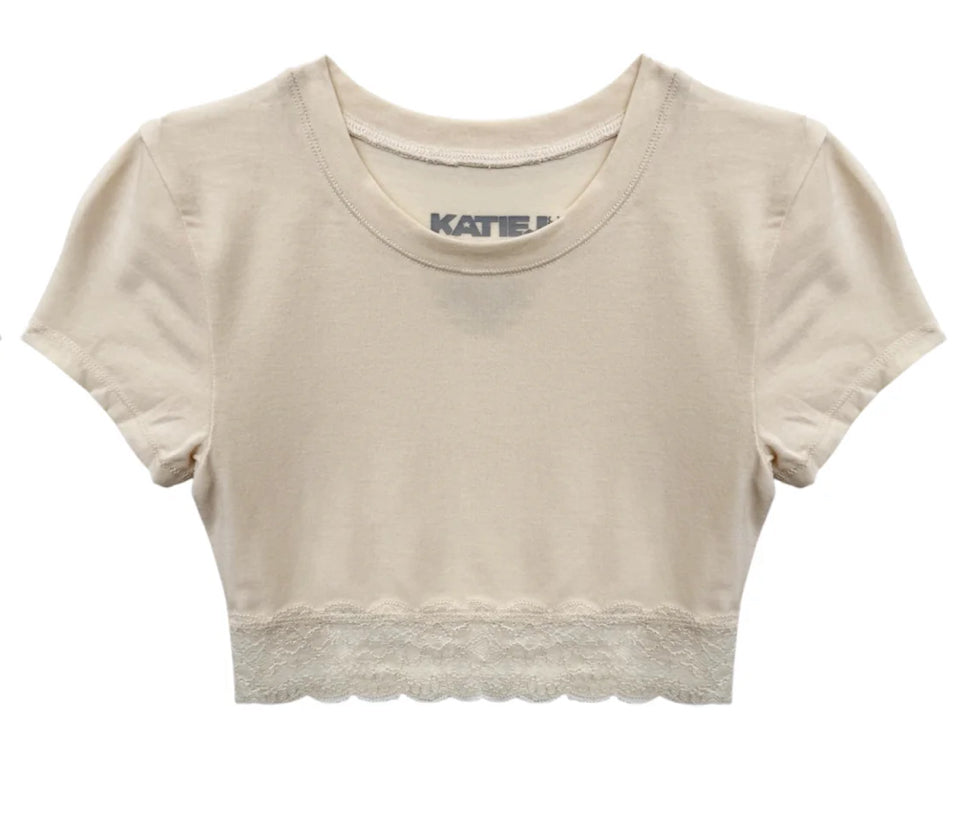 Katie J Girls Vintage White Stretch Lace Trim Lindsey Tee