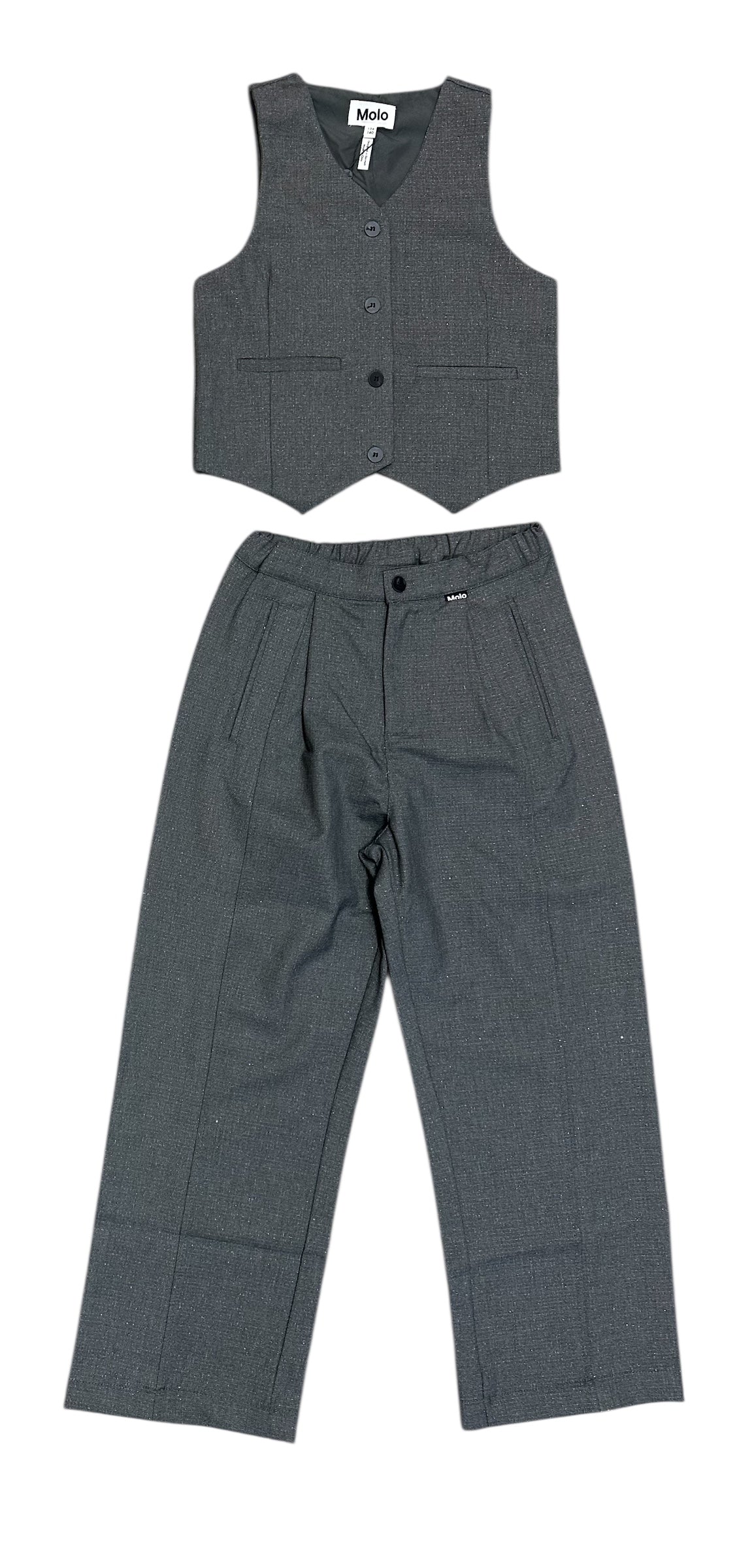 Molo Girls Grey Silver Check Vest and Pants Set