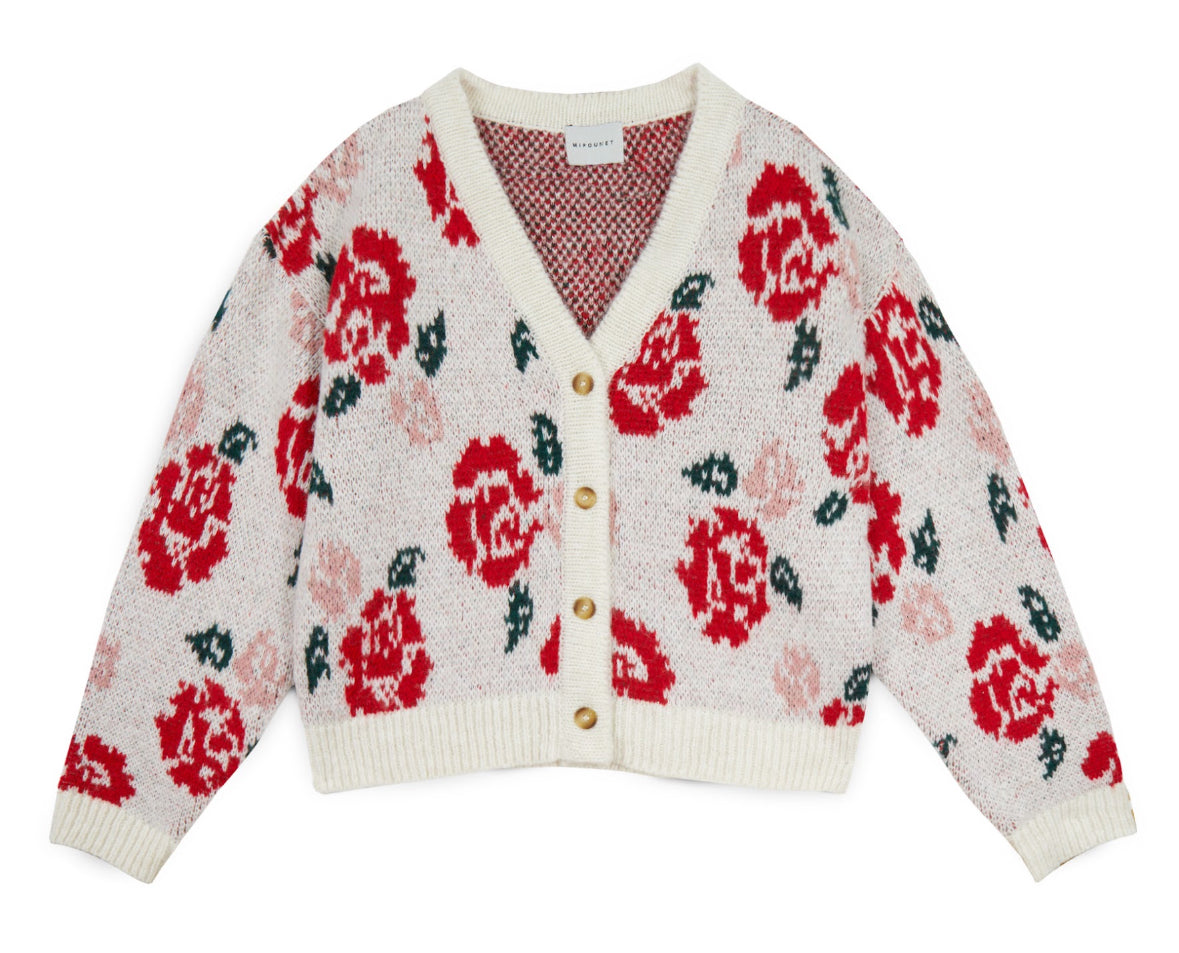 Mipounet Girls Ecru Rio Red Knitwear Alma Flower Cardigan F/W