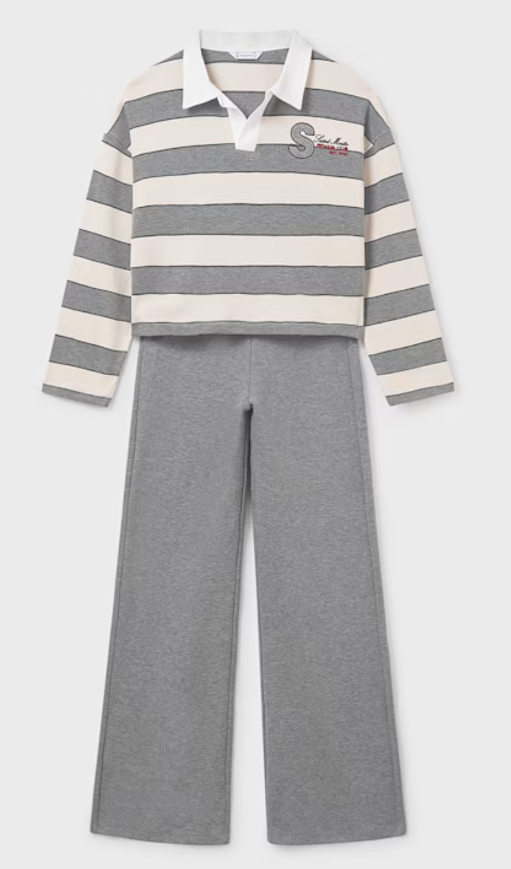 Mayoral Big Girls Steel Heather Stripe Pants and Polo Set F/W