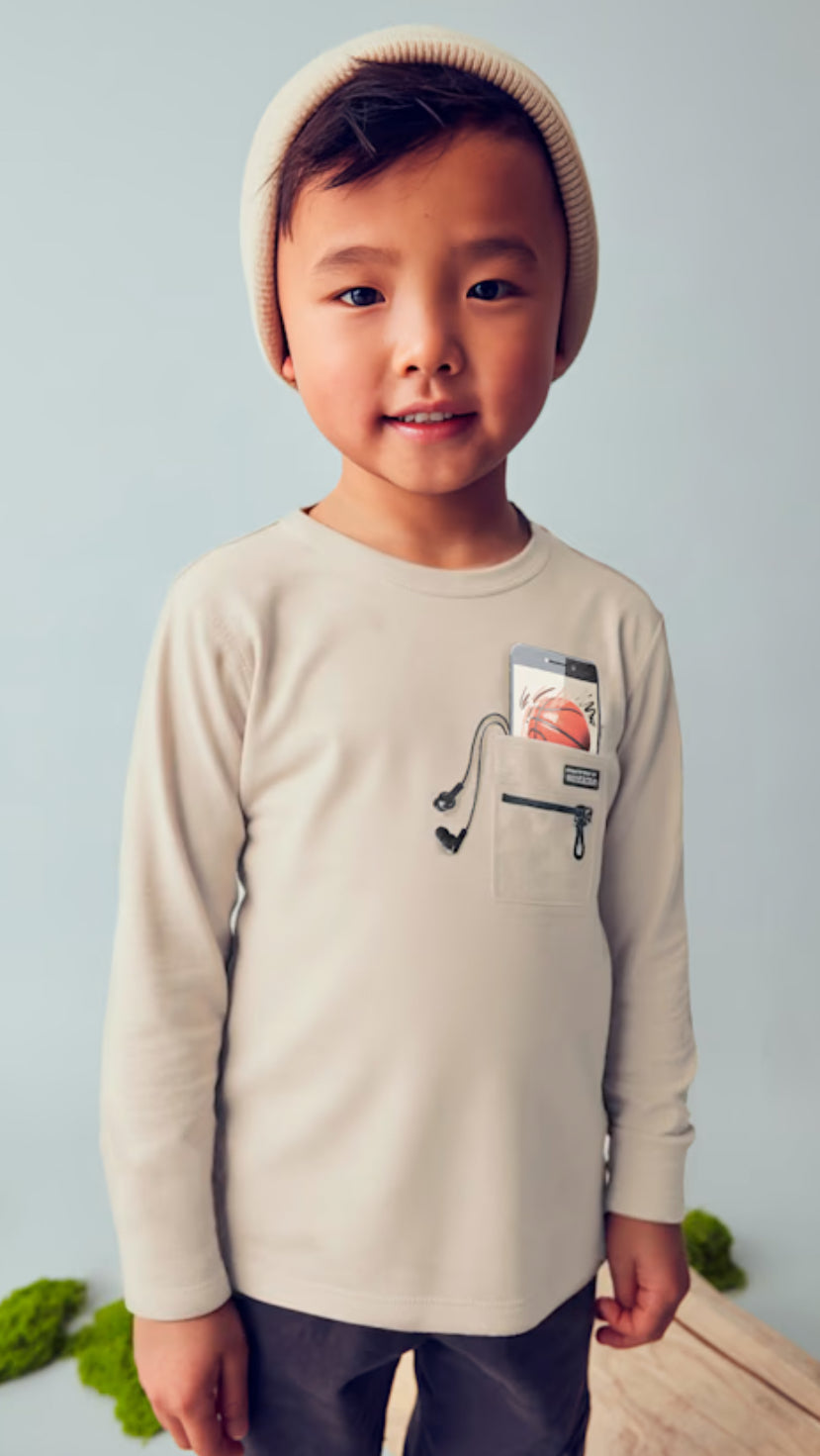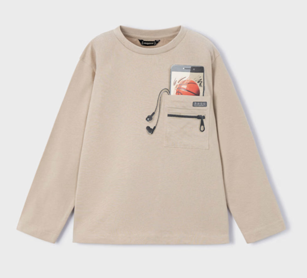 Mayoral Boys Tan Ball Phone Pocket Long Sleeve Tee F/W