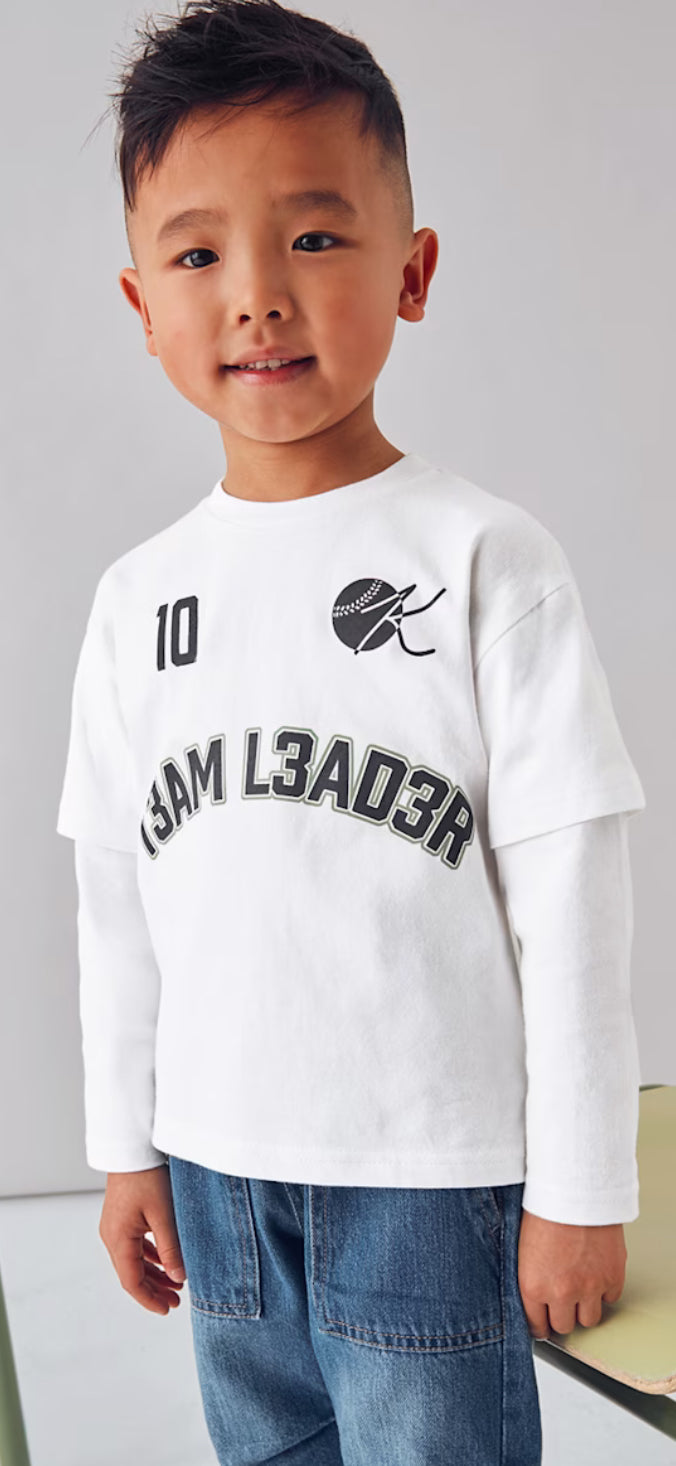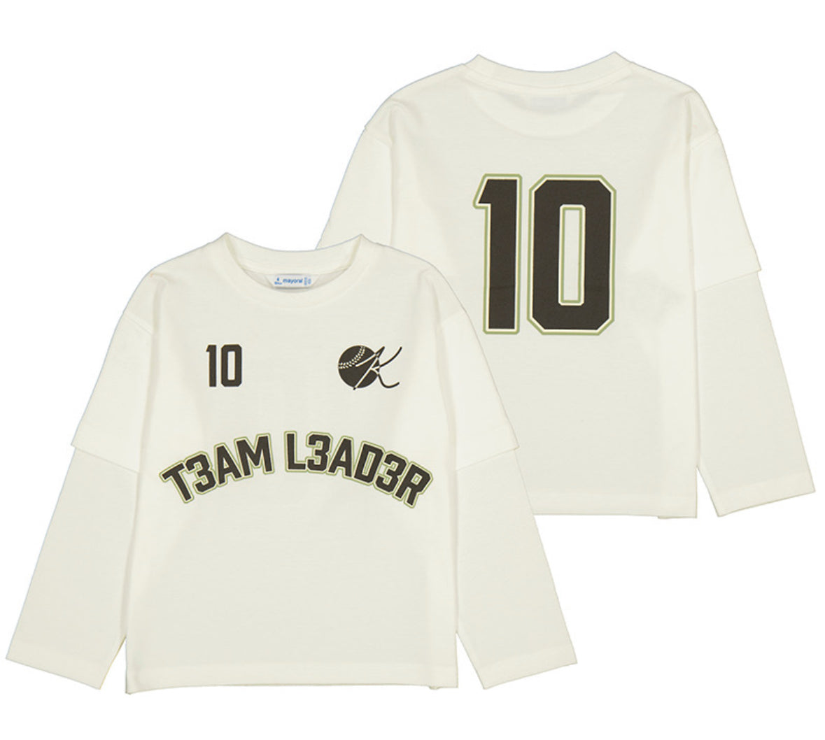 Mayoral Little Boys Cream Team Leader Printed Long Sleeve T Shirt F/W