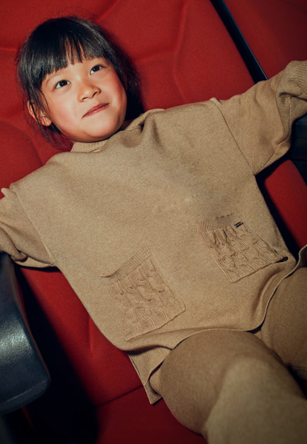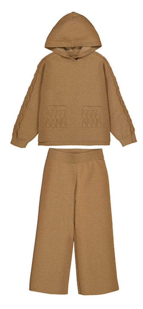 Mayoral Little Girls Camel Knit Pants and Hoodie Set F/W