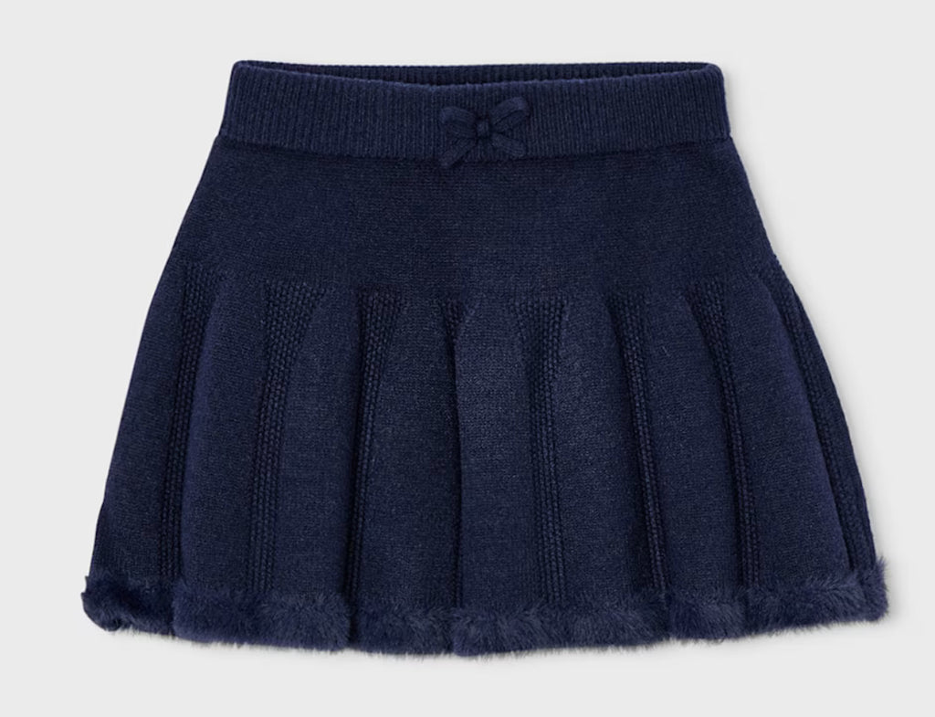 Mayoral Little Girls Navy Faux Fur Collar Cardigan and Skirt Set F/W