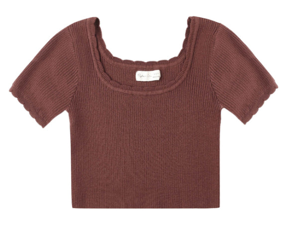 Rylee & Cru Girls Burgundy Scallop Tee F/W