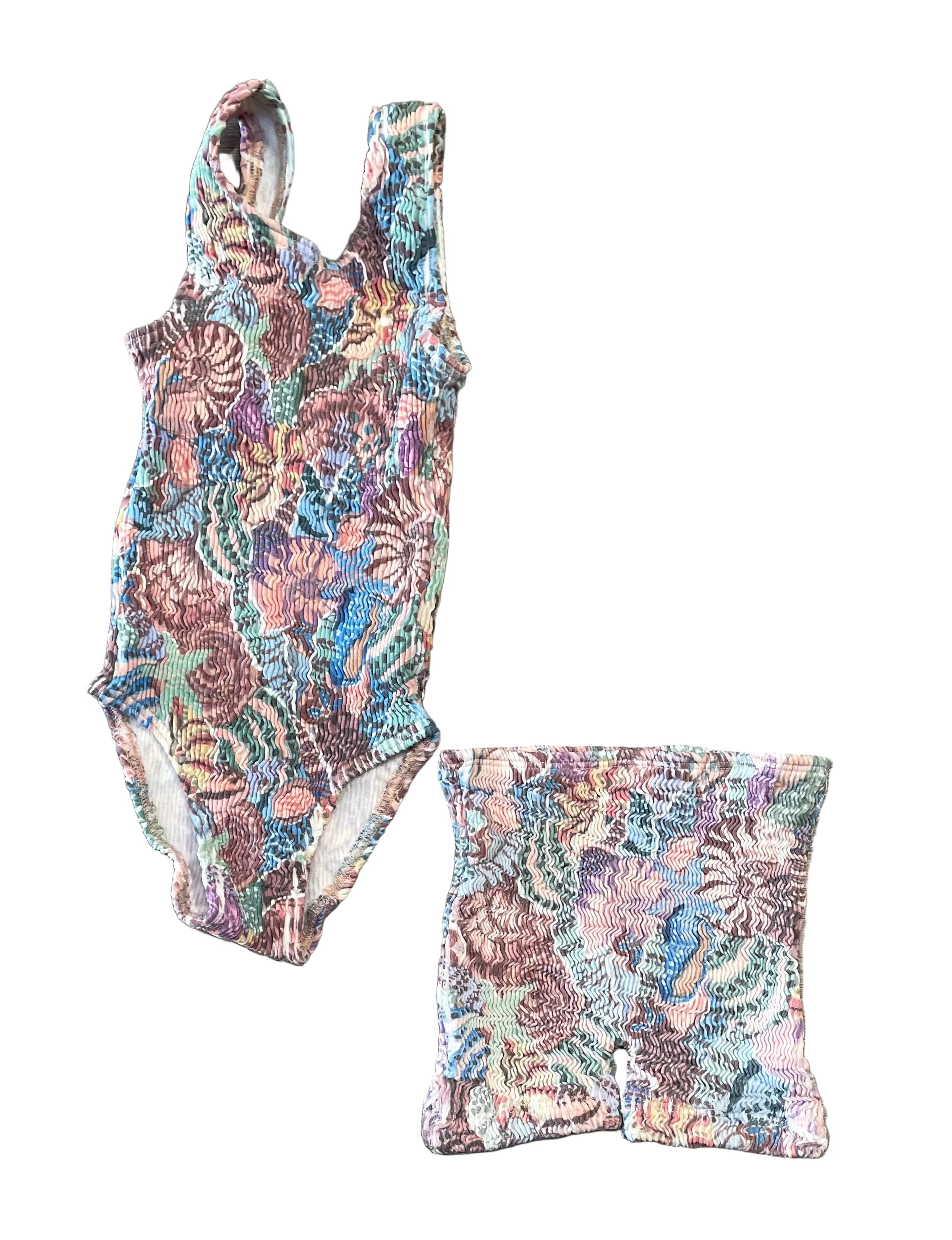 Cleonie Girls Pacifica Printed Sea One Piece and Shorts Set
