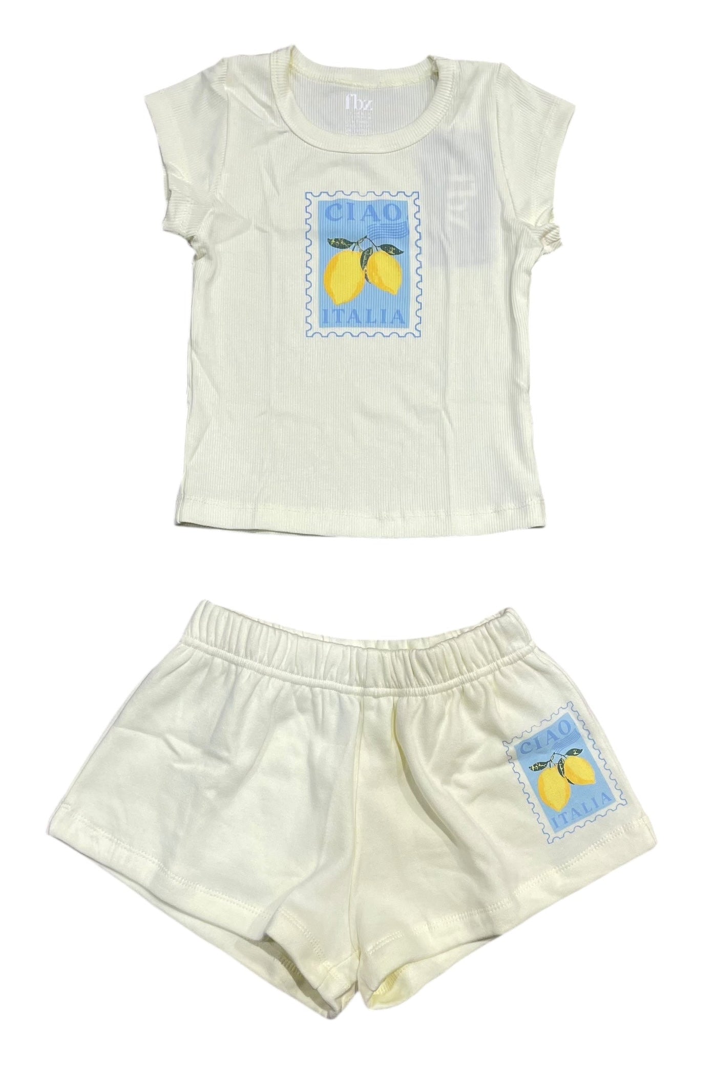 Flowers by Zoe Girls Light Yellow Ciao Tee and Shorts Set