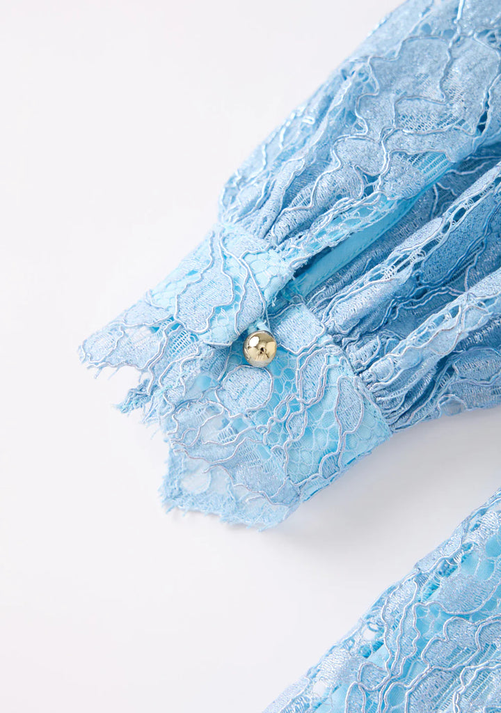 Marlo Girls Blue Lace Embroidered Dolly Dress