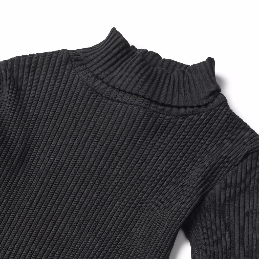 Molo Girls Black Long Sleeve Ribbed Romaine Turtleneck Shirt