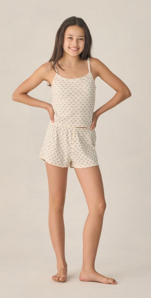Rylee & Cru Girls Natural Floral Pointelle Tank and Shorts Lounge Set
