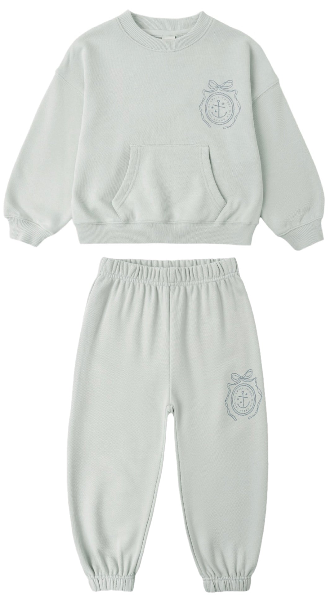 Rylee & Cru Girls Seafoam Pocket Crew and Sweatpants Set