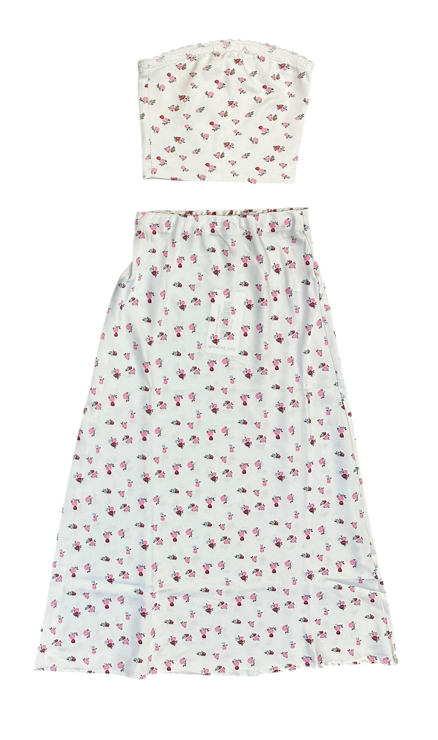 Theme Girls White Rose Alexa Tube Top and Joey Satin Maxi Skirt Set