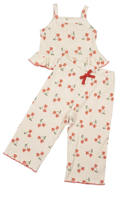 Wild Wawa Baby and Girls Cherry Crush Ribbed Tank and Pants Set