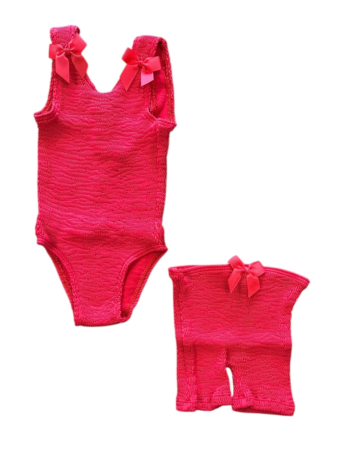 Cleonie Girls Cherry Red with Bows Sea One Piece and Shorts Set