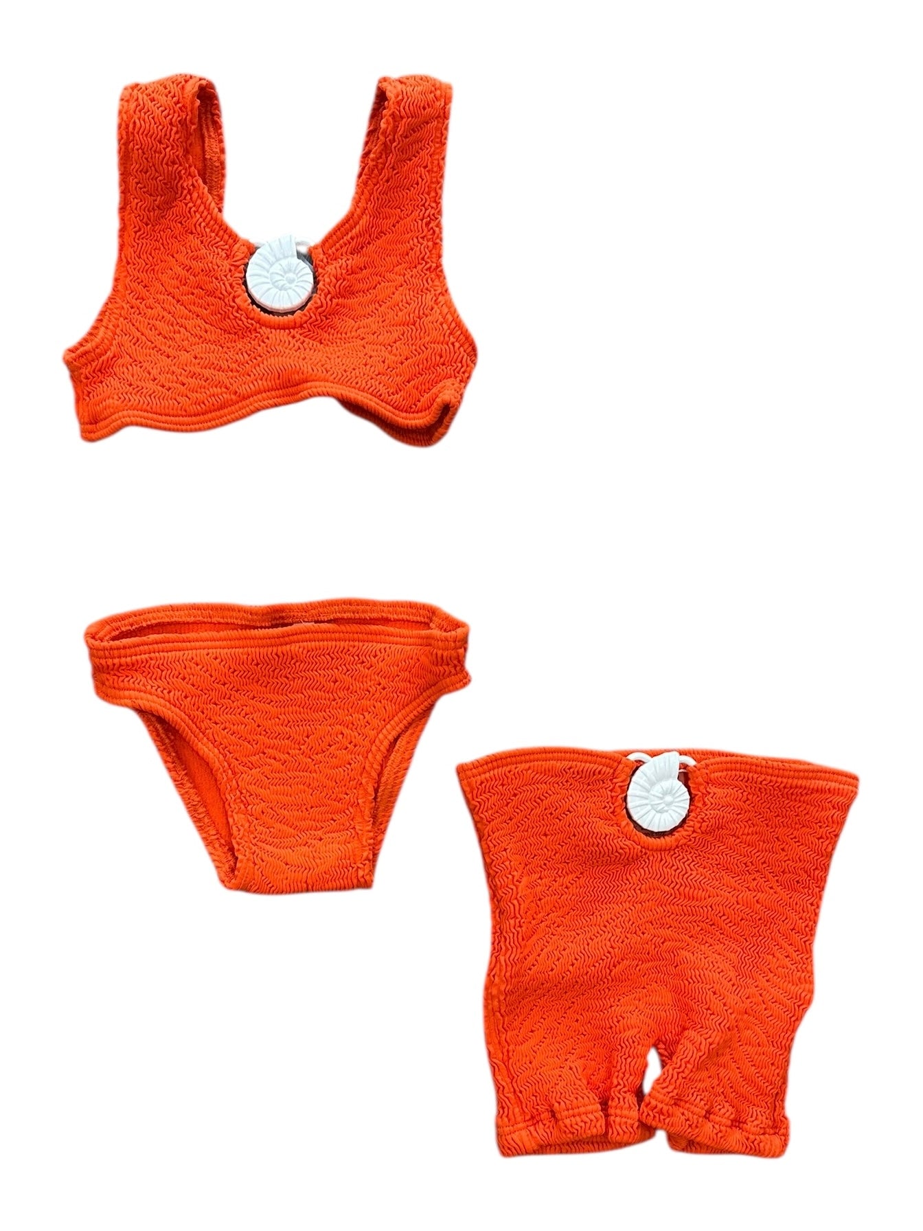 Cleonie Girls Tangerine with Shell Seakini and Shorts Set