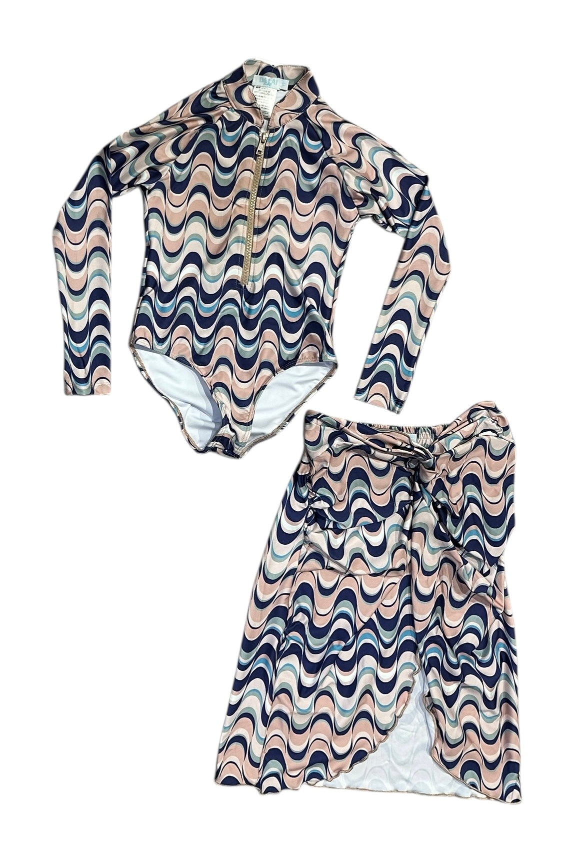 Dalai Girls Lava Long Sleeve Rashguard and Swim Skirt Set