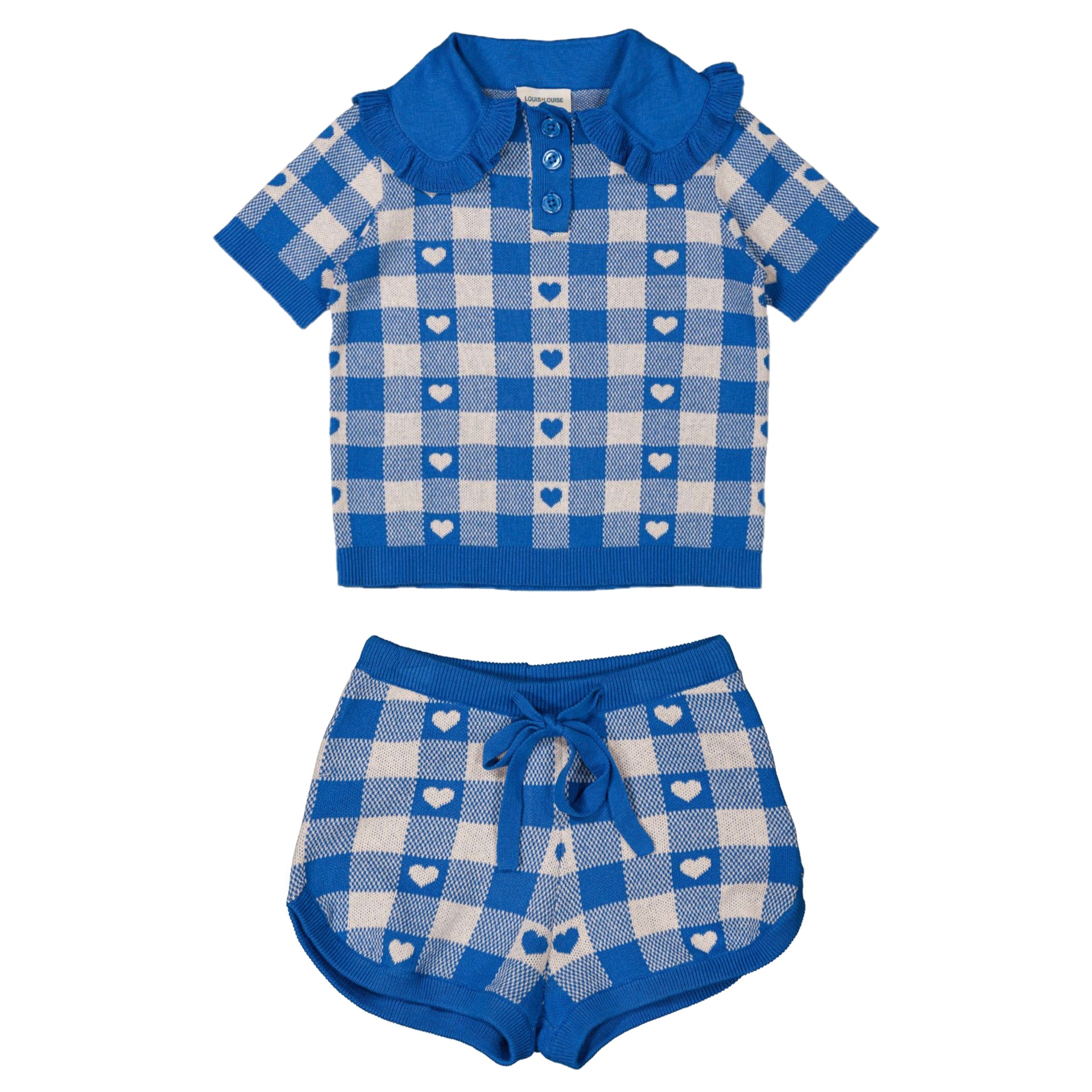 Louis Louise Girls Blue Heart Knit Polo and Shorts Set