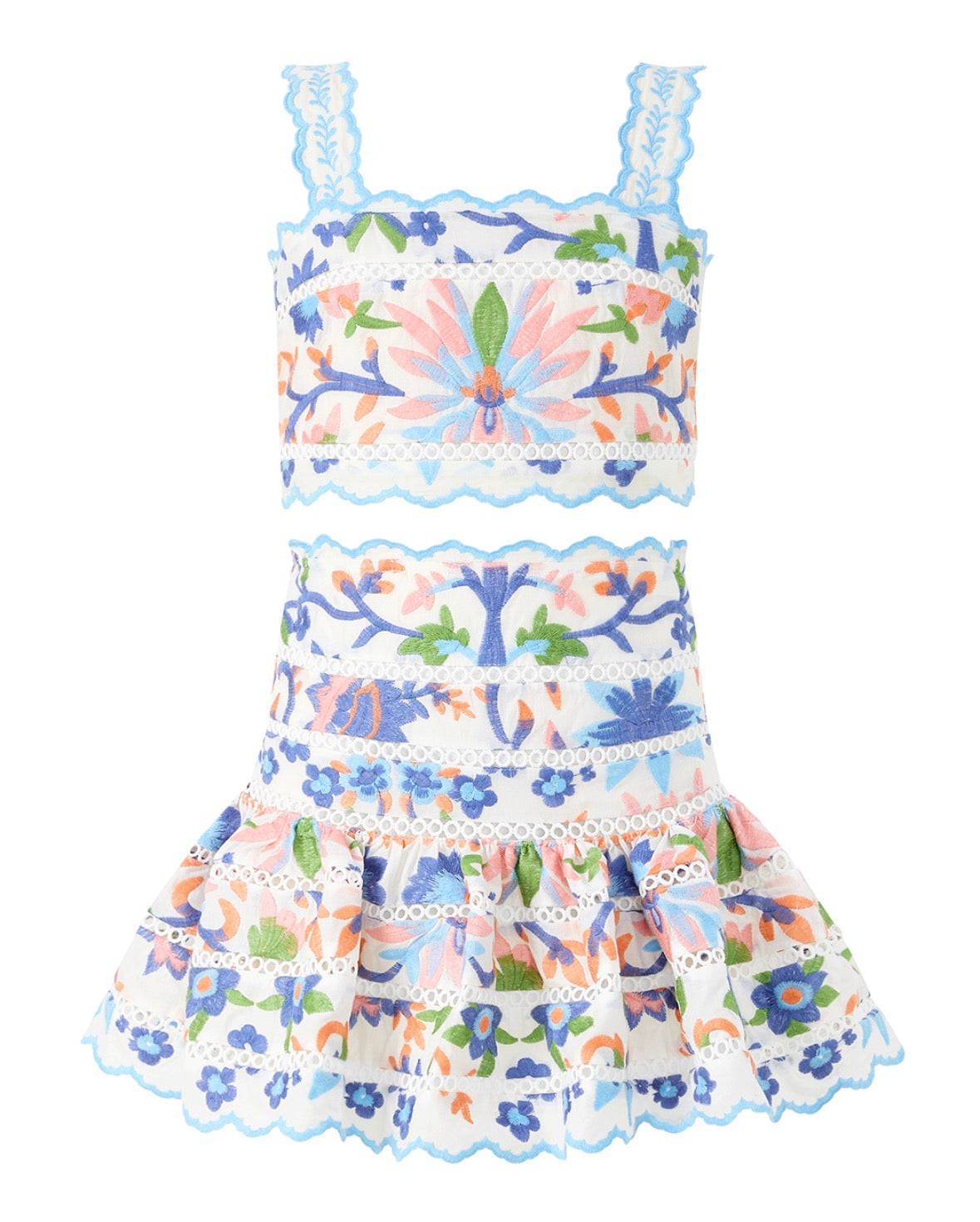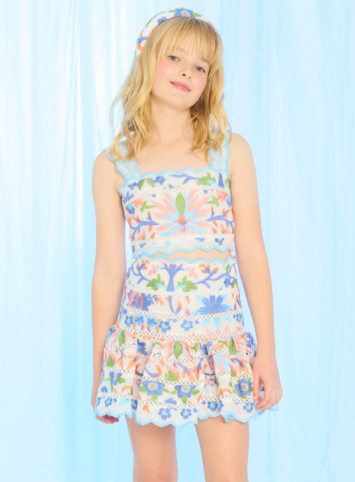 Marlo Girls Multi Sarah Embroidered Top and Skirt Set