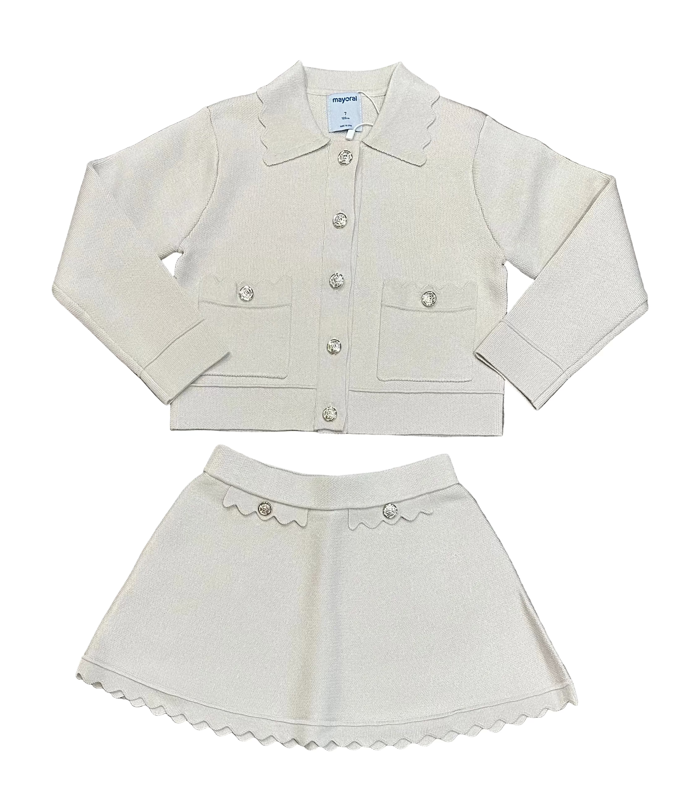 Mayoral Girls Beige Knit Jacket and Skirt Set