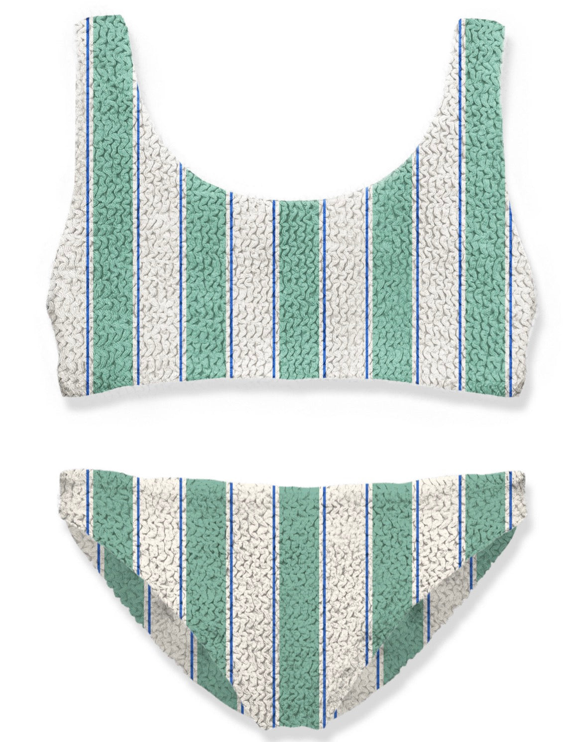 Mc2 Saint Barths Girls Green White Beach Stripes 5317 Crinkle Baker Bikini