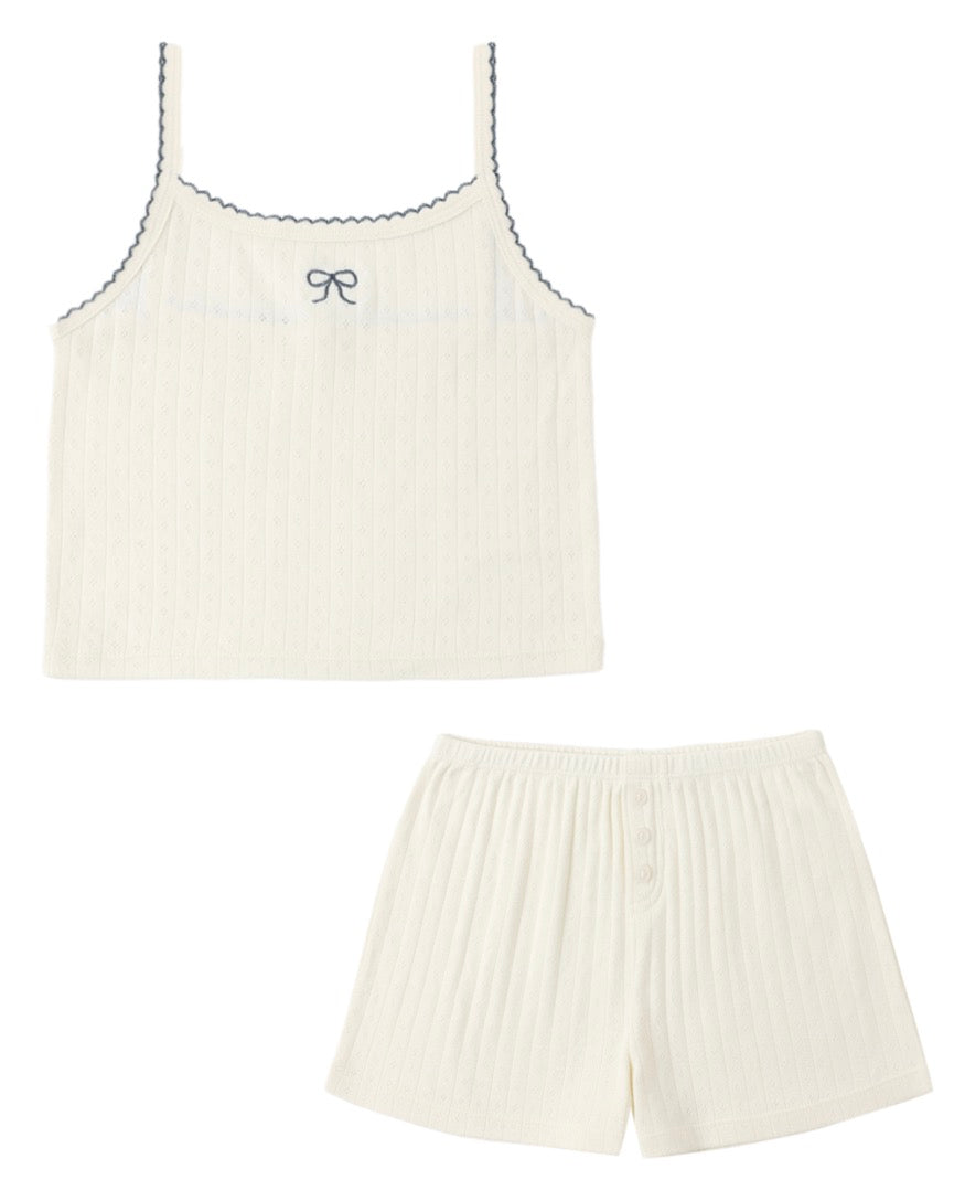 Rylee & Cru Girls Ivory Bow Pointelle Tank and Shorts Lounge Set