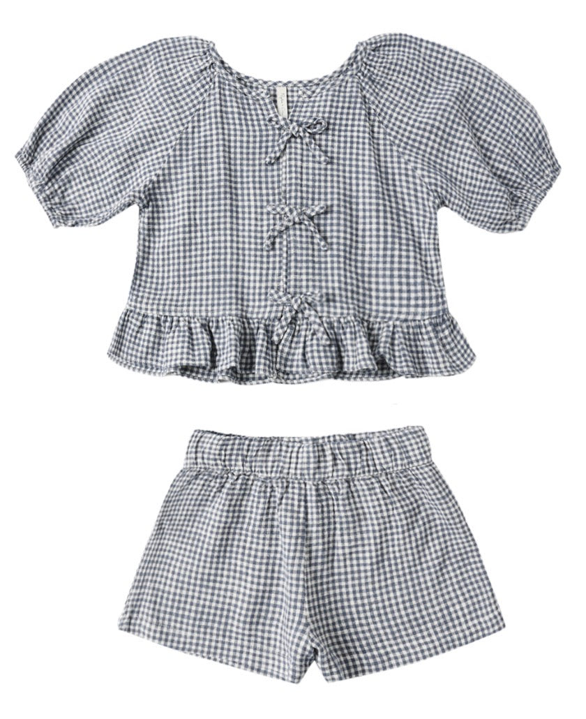 Rylee & Cru Girls Marine Gingham Juniper Tie Top and Shorts Set